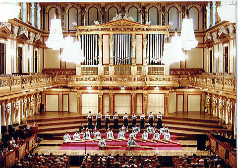 6月22日(日) オーストリア航空にてウィーンへ出発 ウィーン泊 ホテル:インターコンチネンタル ウィーン 6月23日(月) 午後より、楽友協会ホールの 「黄金の間」にてリハーサル後、 ウィーン市内観光。 そしてハプスブルク家の夏の離宮 シェーンブルン宮殿などを見学。 ![]() 演奏本番の前日に、 楽友協会ホールのステージに 足を踏み入れましたら、 何とも言えない神秘さと申しますか、 シーンと澄んだホールの空気に、 誰もが興奮を隠しきれませんでした♪ 6月24日(火) 夕方より楽友協会アイネムザールにて、 再びリハーサル(16〜17時)。 ![]() ![]() プログラム 淀の会紹介ページ そしていよいよ夜、19時開演。 黄金の間にて 【楽友協会ジャパンコンサート“日本の心を歌う”】 開催♪ ![]() 演奏曲目 京友禅 ![]() 演奏曲目 春の海 6月25日(水) ザルツブルクで市内観光の後、 モーツァルトの生家や ミラベル庭園を観光。 ![]() ザルツブルク泊 ホテル:ルネッサンス ザルツブルグ 6月26日(木) ホーエンシュバンガウへ行き、 午後からは ルードヴィッヒ2世が ワグナー歌劇への憧れを形にしたと言われる、 「ノイシュバンシュタイン城」 を観光しました。 ホーエンシュバンガウ泊 ホテル ミューラー 6月27日(金) ホーエンシュバンガウ城を見学の後、 ロマンチック街道を北へ、 シュタインガーデンを目指します。 着後、欧州で最も美しいとされる、 ロココ調のヴィース教会を見学。 その後さらに、ロマンチック街道を北へ ミュンヘンを目指します。 ミュンヘン泊 ホテル ヴィタリス 6月28日(土) ミュンヘンからウィーンへ出て、 ウィーンからオーストリア航空にて空路、 帰国の途へ… (所要時間:11時間10分) ![]() 夢のウィーン「楽友協会ホール」での演奏に、 門下生一同忘れる事の出来ない 演奏の旅となりました。 |