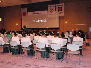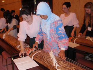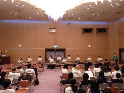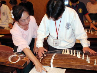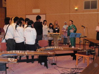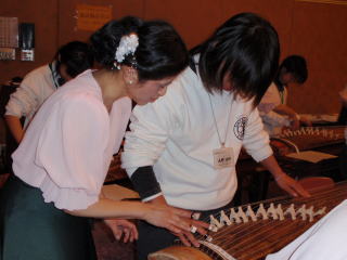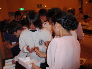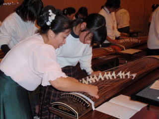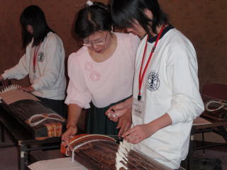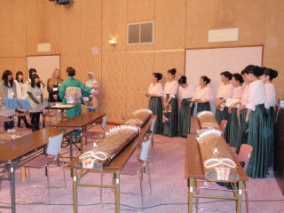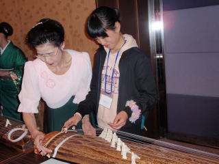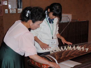 11月15日(日) 【インターアクトクラブ国際交流親睦会】に、 私達淀の会の職格者他13名が 参加させて頂きました。 ![]() 11時の開会式に始まり、 15時の閉会式までの行事に、 私達淀の会もずっとご一緒させて頂き、 とても充実した楽しいひと時を 過ごさせて頂くことができました。 ![]() なんと申しましても、 インターアクト所属の生徒さん方の礼儀正しさ、 素直さ、そして笑顔の素敵なこと! 顧問の先生の下で、生徒さんそれぞれが、 ご自分達の手で作り上げて、 成功させようとされているお姿を拝見致しまして、 本当に素敵な若者達だと、心温まりました。 開会式では、私達淀の会も 【世界に1つだけの花】の曲を披露させて頂き、 会場の皆様もそれぞれの心の中で、 一緒に唄って下さったのではないでしょうか? ![]() そして午後からは、 行事の一貫と致しまして、 日本の伝統文化を取り上げた 【体験学習】と言う事で、 お琴やお茶を体験されたり、 昔の遊びを楽しまれたり と言う内容でございました。 ![]() お琴を体験して頂く生徒さんの前で 【ジュピター】という曲を披露させて頂きました。 いよいよ体験学習のはじまりです。 ![]() ![]() お琴の演奏に必要な、 自分に合った「お爪」のサイズを 選んで頂いているところです。 ![]() 国際交流親睦会に参加させて頂き有難うございました。 社会奉仕するインターアクトの皆さんに敬意を表します。 講師の竹内先生が、誠実・家族・微笑は 世界に共通する大切な事だとおっしゃられました。 淀の会宗家先生の教えと通ずるものを感じ、 嬉しく思いました。 お琴演奏の設営にも大変ご協力頂き、 皆様の元気で親切な対応に 心温まる楽しい時を過ごさせて頂きました。 有難うございました。 (堺市在住 S.N 昭和63年入門) ![]() 生徒さんが主体になって進められた国際交流親睦会。 お琴教室で体験して頂いた成果を 閉会式で生徒さん方だけが演奏を披露されましたが、 これには大変感激致しました。 僅かな時間ではございましたのに、 課題曲「星に願いを」を一生懸命に取り組み、 わからない所は質問をして下さり、 納得するまで熱心に練習をし、そして弾けるようになり、 素敵な笑顔を見せて下さいました。 とても楽しい1日を過ごさせて頂きまして、 有難うございました。 (阿倍野区在住 S.N 平成元年入門) ![]() 邦楽の演奏会には 今まで何度となく出演させて頂きましたが、 此の度のような催しは初めての経験でしたので、 色々な面で不安な気持ちを抱きつつ、 参加させて頂きました。 しかし、皆様(高校生の方・留学生の方・先生方)が 真摯な気持ちで臨んで下さり、 約1時間半という短い講習時間にもかかわらず 「星に願いを」を 私たちの十七絃・パーカッション・歌に合わせて、 「お琴講座」の成果として披露して頂けました。 本当に楽しいひと時でした。 またこのように国際交流に携わっておられます方々が、 お琴という日本文化に興味を持って頂けて、 とても嬉しく存じますとともに、 お琴に対する思いをさらに深め、世界に広めて頂けましたら どんなに素晴らしいかと、ふと考えてしまいました。 世の中暗い事の多い今日この頃 「あぁ、まだまだ大丈夫なんだ」と思うことのできる ホッとする一日でありました。 このたびの国際交流親睦会を 企画・実行・参加して下さいました皆様方、 また淀の会を参加に導いて頂き、 色々とご指導下さりました愛美先生、 誠に有難うございました。 (富田林市在住 S.M 昭和62年入門) ![]() 国際交流会では、演奏を聴いて頂くだけではなく、 生徒さん達に実際にお琴を弾いて頂くということで、 どのような感じになるのか 当日までずっとドキドキしていました。 私は誰かに教えるということを した事がありませんでしたので、 自分の説明で生徒さんに 分かって頂けるのかどうかも心配でしたし、 参加された方に楽しんで頂けるかな・・・と、 不安な気持ちもありましたが、 実際に始まってみると 頑張って弾こうとしておられる 生徒さんにお教えするのは とても楽しく、本当に良いお勉強をさせて頂きました。 参加させて頂きまして、本当に有難うございました。 (阿倍野区在住 M.N 昭和60年入門) ![]() この度、国際交流親睦会に参加させて頂きまして、 学生さん達と楽しい数時間を持つことができましたことは 貴重な体験でございました。 なんとなく恥ずかしそうで、 でも元気いっぱい、好奇心旺盛で、 グループ仲良くて、将来を頼もしく感じました。 準備をしている時、男子の生徒さん2人が 「何でもおっしゃって下さい」とか、 また今度は女子の学生さん2人が 「お琴運びましょうか?」と、 気遣いをして下さり・・・なんて優しく親切で 可愛いのでしょう・・・ きっと思いやりのある国際人になって 活躍されることでございましょう。 またお琴体験にご参加下さった生徒さんは、 本当に熱心で初めてとは思えない程、 楽しそうにしっかり弾いて下さいまして、 とても有意義な時間でございました。 若