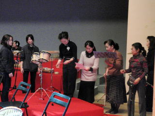 去る11月22日(日)に 堺市民会館大ホールにて、 芸能百華が開催されまして、 私達淀の会も14回目の出演となりました。 ![]() 私達の会にとりまして 一年の締めくくりとなりますこの芸能百華は、 大変大きな舞台でございます。 毎回オープニングを飾らせて頂く 舞台のセットも大変なもので、 前日の夜遅くに、 スタッフの方々にもご協力を頂きまして、 舞台を作りあげるのでございます。 ![]() ![]() 本番当日も朝早くから楽屋入りを致しまして、 会場のスタッフの方のご協力もありまして、 ゲネプロ(舞台リハーサル)をさせて頂き、さて本番です。 今年の曲は、 佐々木愛美編作曲「想い出をあなたに」と言う 洋画の映画音楽にもなりました 「ある愛のうた」 「白い恋人達」 「日曜はダメよ」 の三曲を編曲したものです。 (作品解説より、試聴 「待ってました淀の会!」 とのお客様からの声援と共に幕開けを致しまして、 会員も日頃のリハーサルの成果を 思う存分発揮出来たのではないでしょうか。 ![]() ![]() 後に「洋楽をお琴で奏でるなんて素敵ですね。 とてもびっくり致しましたが、 馴染み深い想い出の曲でしたので 気持よく拝聴させて頂きました」と、 聴きに来て下さいましたお客様から、 このような有難い感想を頂きました。 ![]() <門下生 出演に寄せて> 1年の行事の締めくくりとも言える 「芸能百華」を無事終えることが出来て、 宗家先生・愛美先生に感謝申し上げます。 今年の曲「想い出をあなたに・・・」は楽しくも難しい曲で、 何度もリハーサルをして頂きましたので、本当に助かりました。 合奏の楽しいところは、 芸歴の浅い方も、ベテランの方も、 それなりに担当できるパートがあり、 それぞれが心と呼吸を合わせて(指揮者が居ないもので)、 一つの曲に作り上げていくところにあると思います。 宗家先生はいつも「相手をよく聴きなさい」とおっしゃられます。 始めの頃は舞台の上で周囲の音を聞くことなんて、 とても出来ませんでした。 あがってしまって、自分の音すら 聞こえないような状態でしたが、 やっとこの頃十七絃・尺八・他のパートの琴の音が、 聞こえてくるようになりました。 でも聞こえるだけではダメで、 自分の練習が足りなければ、前のフレーズを受け、 流れに添った演奏は出来ません。 (もっとお稽古をしないとダメですね) 演奏後の高揚した気持ちのなかに、 反省もしながら帰途に着きました。 淀の会の皆様、本年の御礼と共に、 来年もよろしくお願い申し上げます。 (堺市在住 H.H 平成10年入門) 私にとって5回目の 「芸能百華」の出演でございましたが、 大きな舞台で緊張しながらも、 十七絃の音や尺八の音を聞きながら、 演奏することが出来ました。 「想い出をあなたに・・・」は、 団塊の世代の初心者である数名の生徒が、 上級者の皆様や尺八の先生方と 同じ舞台が踏めるようにとの思いで、 愛美先生が編作曲して下さいました。 5月の淀の会定期演奏会でも弾かせて頂きましたが、 その時は間違えずに弾くことで精一杯でしたが、 宗家先生や愛美先生の熱くきめ細かなご指導の下で、 今回は演奏を楽しませて頂きました。 宗家先生・愛美先生そして諸先輩の皆様、 この様な機会を頂き本当に有難うございました。 (堺市在住 Y.S 平成17年入門) ![]() <門下生 出演に寄せて> この度は大変大きな舞台に出演させて頂きまして 本当にありがとうございました(満足な気分です) 幕が上がる時は心臓がドキドキしましたが、 初めの十七絃の音が聞こえてからは、 自然にリラックスしてきて、 あとは本当に気持よく演奏する事が出来ました。 中央の宗家先生の前と言う良いお席に 座らせて頂きましてありがとうございました。 (滋賀県在住 T.H 平成11年入門) 芸能百華に初めて参加させていただきました。 当日は、私の失敗で 舞台を台無しにしてしまわないかと心配でしたが、 淀の会のみなさまに親切にしていただき、 緊張する事もなく、 私のつたない音も合奏によって 美しい音色に奏でてくれたように思います。 今回演奏しました映画の曲は、 お琴や尺八で弾くと和楽器独特の優しい音色が響き、 本当に美しい演奏に感じました。 そのような曲に参加させていただいた事を感謝致します。 (滋賀県在住 S.K 平成13年入門) |