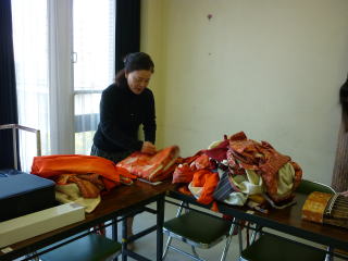12月24日の木曜日は 公民館の最終日でございました。 毎年恒例なのですが、 淀の会会員の方で ご都合のつく方々がお集まり下さり、 一年間お世話になりました楽器類、 食器類などのお掃除を致しました。 接待係の方が中心で 食器類を綺麗にして下さったり、 お盆のお掃除など、本当にすっきり致しました。 ![]() 日頃から大変お世話になっております【お筝】 感謝の気持ちを込めて 丁寧に拭いて下さっておりますね。 ![]() ![]() ![]() これはパーカッション類ですね。 一度全てを出して綺麗に拭いて下さいました。 これは何をしておられるとお思いですか? ![]() 【ゆたん(お筝にかけるお洋服とでも申しましょうか…)】の綻びを、 お裁縫セットをご持参下さり、 丁寧に縫って下さっているのでございます。 ![]() 押し入れの中の整理整頓も欠かしません。 これもまたまた皆さんで 何を拭いておられるのかしら? よくご覧になられて下さい。 ![]() 皆さんがひとつずつ 丁寧に拭いて下さっておりますのは、 お筝の柱なんですよ。 全ての柱を一ヶ所に集めて、 拭いた後に13個ずつにして袋に収めます。 このように皆さんのご協力の下、 公民館の淀の会の楽器類なども一年の汚れを落とし、 新しい年を気持ちよく迎えられる事でございましょう。 |