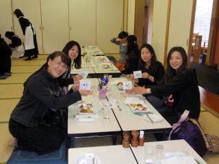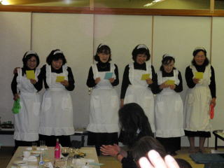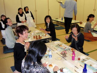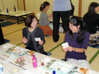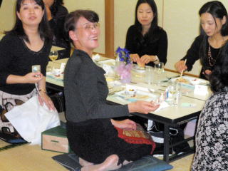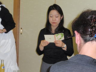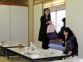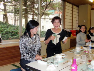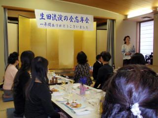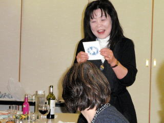 今年の忘年会は、四條畷市にございます 堺から約1時間で到着です。 一方、滋賀から参加される方や、 会場に近い方は、四條畷の駅に集合致しますと 現地の送迎バスが迎えに来て下さいました。 そして会場に到着致しました皆さんが、 バスから降りられると口々に 「素敵なところね~♪ 大阪にもこんな自然の素敵なところがあるのね~」 と、喜んでいました。 ![]() ![]() ![]() 会場に到着致しました幹事の皆さんは、 まず忘年会のお部屋に向かい、 短時間で会場の準備に取り掛かって下さいます。 ![]() ![]() そしてその他の方々は 各自会場周辺を散策し、 紅葉を満喫したり、 会場内の素敵なお店をウロウロしたりと、 楽しんでおりました。 ![]() ![]() 現地に到着致しましてから約20分で お部屋の準備が整ったようでございます。 ![]() 幹事さんのお声で、 次々とお部屋に集まってまいります。 ![]() 「私の座席はどこ?」 「こちらですよ~」 ![]() なんて幹事の方のご案内で、 それぞれがくじ引きで決まった座席に着席です♪ ![]() ![]() ![]() ![]() 皆さんがお席につかれてから 幹事の方によります 開会のご挨拶がございました。 ![]() そして、次に宗家先生からご挨拶を頂きましたが、 お料理を前にしておりましたので、 宗家先生も手短にご挨拶を下さいました。 ![]() そしてみんなで 「今年も1年お疲れ様でございました」 と乾杯です。 ![]() しばらくは、お食事タイム♪で、 各テーブルでお話を楽しみながら コースを頂きました。 さてさて今年の忘年会は こちらの【アイアイ・ランド】で フランス料理のコースを頂いたのですよ。 ![]() ![]() そうしてしばらくお食事を頂いておりますと、 今年は先に【プレゼント交換】の始まりでございます♪ 今年のプレゼント交換は 例年とはちょっと違って、 ビンゴゲームで上がった人から 好きな包みに入ったプレゼントを選べる! と言うものでした。 ![]() ![]() これがなかなかビンゴにならないのですよ。 全員が上がるまで、 かなり時間がかかったのではないでしょうか…。 でも楽しくて楽しくて、 みんなワクワクしながら 番号を探しておりましたよ。 プレゼントを受け取られたそれぞれが、 みんなの前で披露致します。 ![]() ![]() ![]() ![]() さて、ビンゴゲームのプレゼント交換が終わりましたら、 ここでちょっと休憩。 またそれぞれにお食事やお酒を楽しみ お話にも花が咲きました。 ![]() そのような中、幹事さんは大忙し。 皆さんのお酒の注文を聞き回って下さいました。 お腹がボチボチいっぱいになってきたところで 体を使っての面白いゲームがいっぱい♪ ![]() ![]() ![]() ご覧下さい! この宗家先生のお姿!! 会員の皆と楽しくゲームに参加して下さいました。 ![]() もうみんなお腹を抱えて大笑い致しました そしてこのような楽しい時間が経つのはとても早く、 名残り惜しいのですが、 最後に愛美先生よりご挨拶がございまして、 それで締めくくりかと思いましたら、 今年の幹事の皆様から【ありがとう】の歌を プレゼントして下さいました♪♪ ![]() そしてお食事を終えた私達は アイアイ・ランドを後にし、 生駒山のドライブウェイをバスで走り、 生駒の夜景を満喫し、そのまま帰路につきます。 帰りのバス車中では【雅なる堺】の歌をみんなで唄い 楽しく過ごす事が出来ました。 今年の忘年会幹事を務めて下さいました 接待係りの皆さまには、 本当にお世話になりまして ありがとうございました。 とても楽しい一日でございました。 【門下生のコメント】 淀の会一年の締めくくりの行事であります忘年会を 楽しく過ごさせて頂きました。 今年はバスで四條畷の方にあります、 アイアイランドでさせて頂き とても綺麗な景色、施設でお食事を頂きながらの 数々のゲームが、とても楽しく、 忙しい日常をふっと忘れさせてくれ、 又淀の会の絆が深まった素敵な時間でした。 帰りの生駒スカイラインからの夜景は、絶景でした。 最後の愛美先生のご挨拶に私は感激しまして、 うるうるくる涙を抑えるのに必死でした。 (一度出ますと止まらなくなるものですから…) また今年参加出来ませんでした淀の会の方とも、 来年ご一緒出来ますこと、楽しみにしています。 本年も 宗家先生 愛美先生 お尺の諸先生方 有難うございました。 最後にこの忘年会の準備をして下さいました接待係の皆様、 素敵な企画お世話になりまして有難うございました。 (堺市南区在住 M.S. 昭和43年入門) 忘年会にはいつも参加させて頂いておりますが 今年は、バス旅行で個人的にも久しぶりでしたので、 とても楽しかったです。 沢山のゲームでは、頭を使ったり体を使ったりと工夫がされいて、 すごく盛り上がり、楽しかったです。 プレゼント交換も自分で選んだりと いつもと違ったかんじで、新鮮でした! 大阪から一時間しか離れていないのに自然が多くとても癒され、 またスカイラインでは、綺麗な夕日&夜景がとても良かったです。 幹事のみなさんには、準備が大変だったと思います。 有難うござい