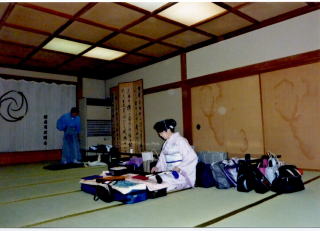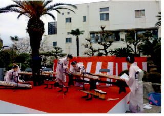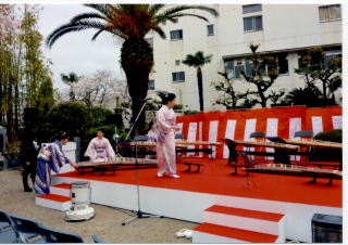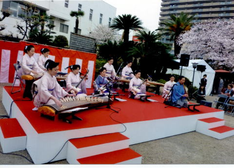 この日の屋外でのステージは、 心配致しておりました雨も上がり、 満開の桜の下での演奏でございました。 たいへん多くのお客様を前に オープニングを飾らせて頂きまして、 お筝に十七絃、お三絃に尺八、 そして打ち物の太鼓を入れての演奏に、 お楽しみ頂けたのではないでしょうか。 会場に到着致しましたら、 既にステージはとても美しく出来上がっておりまして、 真っ赤な毛氈が眩しくて、 このような素敵なステージで演奏させて頂けます事を 会員皆がとても喜びました。 それから直ぐに、お筝のお調絃を致し、 ステージ上のお筝の配置に取り掛かりました。 ![]() ![]() 一方、控え室ではお三絃のお調絃を 専属の係りの方が念入りに チェックして下さいます。 ![]() いよいよ本番です。 本日演奏させて頂きました曲は、 佐々木愛美作曲によります 【雅なる堺】でございました。 会場が【堺】と言うこともありまして、 この曲を演奏させて頂いたのでございますが 曲の始まりはとても華やかで 《ものづくりのまち堺》をイメージ致しまして、 活気ある曲想になっております。 曲が始まりましてから25小節目には “もののはじまりなんでも堺~、 堺よいとこ一度はござれ~” と言う詩を取り入れ、 より堺商人らしい旋律へと皆様を導きます。 ![]() ステージでの演奏が終わりましたら、 まずは控え室にてホッと一息。 宗家先生が出演者や、 お手伝いに来て下さいました皆さんに おぜんざいをご馳走して下さいました。 ![]() 今日の演奏の出来や反省点などを、 皆で楽しくお話致しながらの お時間でございました。 おぜんざいを頂きましたあとに、 今度は主催者の方から頂戴致しました お茶席のチケットを持ち、 皆でお抹茶を頂きに・・・(美味しい♪) ![]() 屋外でのステージは あまり経験がございませんもので、 少し風の吹いたこの日は、 演奏中に楽譜がパラパラと捲れたりと 色々とハプニングがございましたが、 演奏が終わりますと大勢のお客様より、 たくさんの拍手を頂戴致しまして、 出演者一同感激致しました。 有難うございました。 |