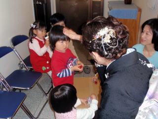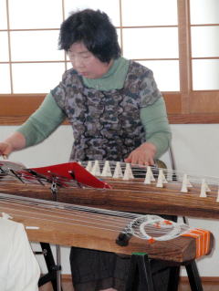 この日は、大阪本部より 宗家先生と教師の先生を2名 そして日頃淀の会が大変お世話になっております 、尺八の先生方にお越し頂きまして、 滋賀県支部の合奏研究会を開催致しました。 ![]() 週間天気予報などでは、この日は【春の嵐】になり、 大荒れの1日になると聞いておりましたが、 有難い事に少々の雨には降られたものの、 お昼間には晴れ間も覗き、穏かな日となりました。 お天気を心配致しておりましたのは 大阪より諸先生方がお車でお越しだということ、 そして滋賀の生徒の中には 出産間近の妊婦さんもおられますし 今回は小さなお子様連れの生徒も たくさん参加してくれましたので、 とてもお天気が気になるところでございました。 ![]() 滋賀県支部の生徒達は、 なかなか大阪の本部に お顔を出させて頂く機会がございませんもので、 とにかく何事もいちからのお勉強でございます。 毎週のお稽古も個人レッスンが主体でございますので 滋賀県支部のお仲間同士でも、お顔を合わす機会が少なく、 また合奏なんて1年を通して1・2回あれば良い方ですね。 入会されて日の浅い生徒さんは、 何をどうしてよいものかオロオロしておりますが 滋賀県支部でも、10年程になられる生徒さんは やはり研究会を前に いろいろとお考えを提案して下さり、 相談を持ちかけて下さり 当日を迎えるにあたり、 いろいろと準備をして下さいました。 そういう面では、生徒間で少しずつ 段取りを出来るようになってまいりました。 ![]() ![]() 演奏が始まり、お調絃やお筝のセッティングなどは、 今回は丁度、大阪の本部内のその分野で 活躍されておられる諸先生方が お越しになられるという事で、 滋賀県支部の生徒にもご指導頂けるように お願いを致しておりました。 慣れない滋賀の生徒達はパニックで、 なかなか覚えるというところまでには たどりつかなかったと致しましても、 そういった雰囲気が味わえたという事は とても良い経験になったと思い、 諸先生方には感謝申し上げます。 ![]() そして今回は、今3人の子育て真っ最中で、 お稽古をお休みされておられる生徒さんが、 お子様を連れて遊びに来て下さいました。 それに、子育てをしながら お稽古に通ってきてくれている生徒さん方が それぞれお子様を連れての参加。 また、ご家族の方々もお越し下さったりと、 とても賑やかな研究会となりました。 宗家先生も、孫弟子のお子さんを 可愛いがって下さっておりました。 そして尺八の先生も持ってこられたカメラで 子ども達を写して下さっておりました。 ![]() 滋賀県支部の生徒達は それぞれに新しい事への挑戦もあり、 この日に向けて頑張りました。 【箱根八里変奏曲】 ![]() 十七絃を初めてまだ一年半くらいですが 箱根八里変奏曲の高度な十七絃パートに 挑戦致しました。 ![]() 【黒髪】 独奏で黒髪のお三絃に挑戦してくれました ![]() 【篝火】 それぞれのパートの呼吸が大変難しいこの曲ですが、 大阪の諸先生方に助演頂きまして 演奏することが出来ました。 ![]() 【浜辺の歌】【昴】 ![]() 【秋のうた】 手の浅い生徒さん達は、 先輩に支えて頂きながら 楽しく演奏する事が 出来ました。 ![]() ![]() ![]() 【門下生の声】 初めての合奏研究会、50才にして 本当に素晴らしい経験をさせて頂きました。 感動することばかりでした。 その中で一番感動し嬉しかったことは、 最後のプログラムで「秋のうた」を演奏した時のこと。 演奏後、宗家先生より一人一人に 「秋のうたの中に入っているどの曲が一番好きですか?」 と尋ねられました。 そして答えた曲を独奏することになったのです。 私は 全く自信なく逃げ出したくなり、 最悪の精神状態になってしまいした。 私の順番が来た時「私には多分弾けません」と言うと、 宗家先生は「それでしたらゆっくりと弾いたらいいので、 安心して弾きなさい」とおっしゃて下さいました。 そして周りの皆様がゆっくり歌って下さり、 こんな私を温かく応援して下さいました。 「未熟なのは仕方ないの。 でも一つ一つの音がしっかり弾けてます。頑張って!」 と批評して下さいました。 こんな末端の私に宗家先生が、 一対一で指導して下さった驚きと、 皆様の優しい応援が、天にも昇るような感動でした。 来年を目指して頑張らねば申し訳ないと繰り返し思い、 合奏演奏会に参加できたことの喜び、 興奮を抱き 帰路につきました (滋賀県近江八幡市在住 T.I. 平成20年入門) 研究会は、緊張もしましたが和やかな雰囲気で、 楽しく演奏できてよかったです。 日々の慌ただしい生活から、 少し抜け出しほっとできる1日でした。 (滋賀県東近江市在住 T.N. 平成11年入門) プログラム最後の大曲【さくら変奏曲】の1筝は、 大阪の諸先生方が 見事な演奏を披露して下さいました。 ![]() ありがとうございました。 ![]() 出産間近で、今はしばらくお稽古をお休みされています生徒 と久しぶりに再会した滋賀県支部のお仲間です。 (はいチーズ♪) 【門下生の声】 私は出産を控