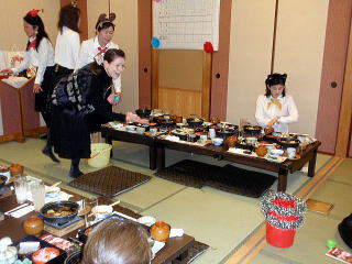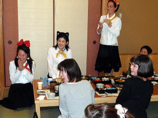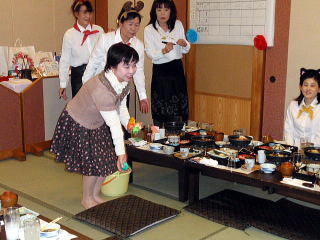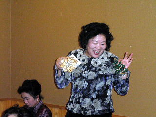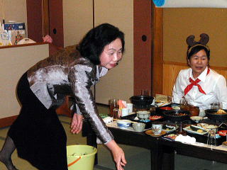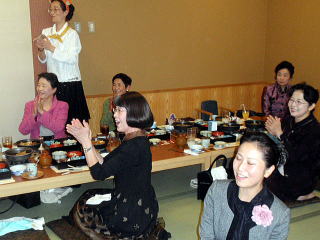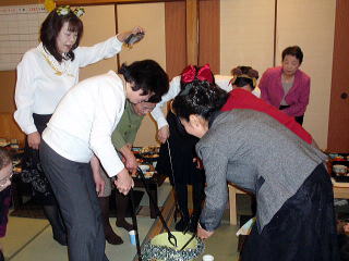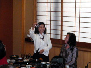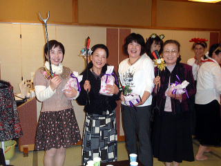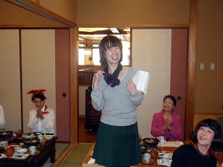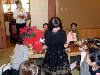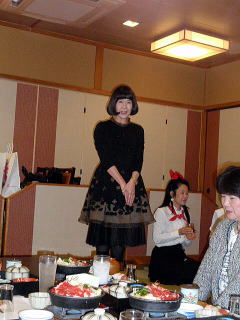 風が冷たく感じられる頃となりました。 そして平成23年度、淀の会の公の活動が 本日で終了致しましたことをご報告申し上げます。 今年も数々の恒例のステージ、 そして色々な方面からのご依頼を頂戴致しましたり 新しい活動と致しましては、 秋に開催されました【打楽器研修会】など 本当に盛りだくさんの1年でございましたね。 そんな1年を振り返りながら、 皆さんで楽しい一日を過ごすことが出来ました 本日の忘年会。 今年、お世話を下さいましたのは 『舞台係り』の皆様でございました。 ![]() この日が近づいてまいりますと、 リハーサルの後などに打合せをされたり また会場の下見に行かれたり、 準備などにもとても大変だったことと思います。 本当にありがとうございました。 予定のお時間を少しだけ回りましたが、 早速【平成23年度、淀の会忘年会】を開催致します。 まず初めに宗家先生よりご挨拶を頂戴致しまして、 その後続いて乾杯のご発声を 代表の方より頂戴致しました。 ![]() 皆様の健康、美貌、 そして益々の淀の会の発展を祈念し、 乾杯を致しました後は しばし各テーブルでの団欒をお楽しみ頂きます。 ![]() ![]() ![]() ![]() それぞれにお話が弾んでまいりましたところで 淀の会恒例の楽しい楽しい ゲームタイムの始まりでございます。 毎年、幹事になられた方々は 本当にいろいろなアイデアを出され、 とても場を盛り上げて下さいます。 ![]() ![]() ![]() ![]() 今年もくじで決まりました 各テーブル席でのグループ対抗でございます。 今日はきちんと点数表が貼られてありますね(^^;) ![]() そうなりますと、負けてはいられない!と、 皆さん頑張られて、とても盛り上がりました。 ![]() ![]() ![]() ![]() ![]() ![]() ![]() さて結果はいかに・・・。 いよいよ発表でございます。 今年の1位優勝グループは、 ガーベラチームの方々でございました。 とっても嬉しそうでございますね。 おめでとうございました♪ ![]() ゲームでお楽しみのお写真を、 全て載せさせて頂こうと思いますと とんでもない数になりますので、 この辺で置かせて頂くことに致しますが 次も、恒例のプレゼント交換タイムでございます。 ![]() ![]() プレゼントのお値段を1000円くらいと決めて それぞれが思い思いのプレゼントを買い求め、持ち寄ります。 そのプレゼントの中には無記名でメッセージを添えて 一体どなたからのプレゼントなのか 分からないようにするのですよ。 去年は確か・・・ ビンゴゲームを致しまして、 早くに上がった方から 気になる包みを頂いたものでございましたが 今年はくじ引きで、プレゼントが決まりましたよ。 ![]() ![]() ![]() ![]() 皆さん、素敵なプレゼントを頂けましたか? そして淀の会の忘年会に、 今年初めてご参加下さいました方が4名もおられまして 最後になりましたが、皆様にご紹介がございました。 |