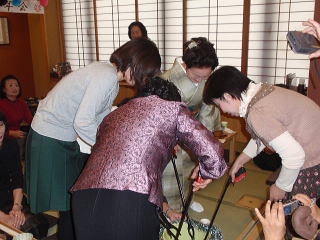 ![]() 今年淀の会に入門させて頂きました。 ベテランの皆様がお集まりになる会に ひよこ…いえまだまだ卵の私が 出席させて頂いていいものか 愛美先生にお伺いしたところ、 ぜひぜひととても喜んで下さいました。 プレゼント交換のプレゼントや メッセージを考えるのも とてもわくわくする時間でした。 淀の会の皆様とお会いすることを楽しみに 当日を迎えることができました。 幹事の皆様がとても素敵な忘年会を 企画して下さっていました。 座席の設定やゲーム、 時間を忘れるくらい夢中で楽しめました。 本当に時間をかけて私達のために 準備をして下さったことに嬉しく思いました。 有難うございました。 また日頃宗家先生と ご一緒させて頂く機会が少ない私ですが、 宗家先生のいつも素敵なお着物の着こなしや、 所作の美しさを目の当たりにして、 自分のがさつさを反省致しました。 そして愛美先生の最後のお茶目な姿でのご挨拶。 いつもレッスンの時間が楽しいのは お優しい愛美先生のおかげなのだと 愛美先生に教えて頂けていることに 感謝致しました。 また恒例?のプレゼント交換で、 一人ひとりのメッセージが読み上げられました。 個性あふれるメッセージとプレゼントで みなさんが心わくわくされたことと思います。 私のプレゼントが当った方に 喜んで頂けたかしらとちょっと心配です。 私は私がちょうど欲しいと思っていたものでした。 私の頂いたメッセージの中で 「演奏会にご出演されたり・・・・」とありました。 残念ながらまだまだ卵の私にとりまして 舞台出演は、遠い先の夢ですが、 いつかそのメッセージが現実のものとなるように 練習を重ねたいと思います。 また来年もぜひ参加をさせて頂きたいと 心から思っています。 宗家先生、愛美先生、幹事の皆様、 楽しい時間を本当に有難うございました。 (堺市在住 M・O 平成23年入門) |