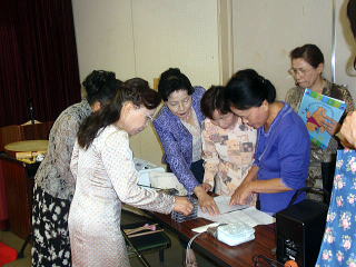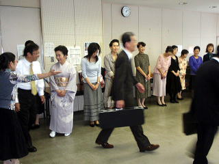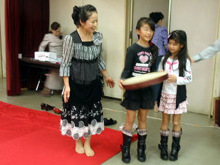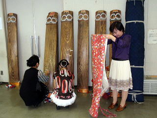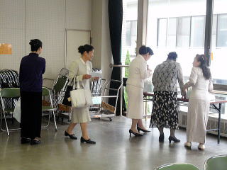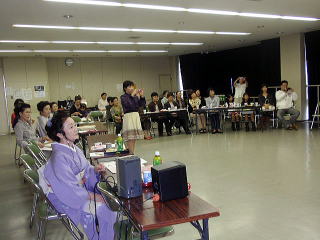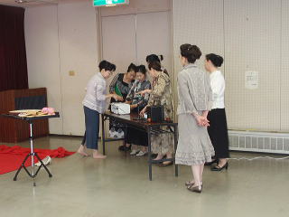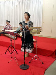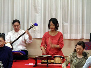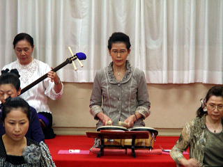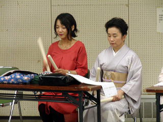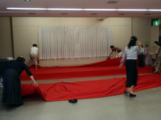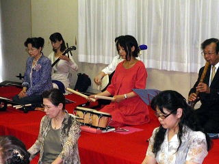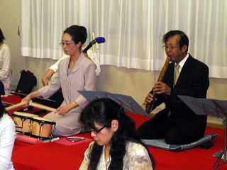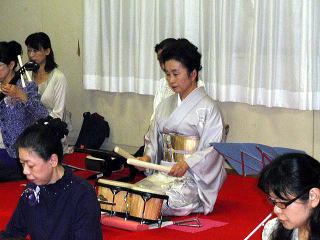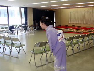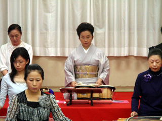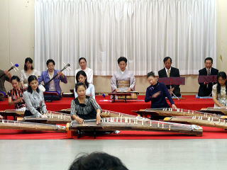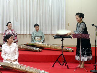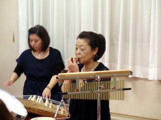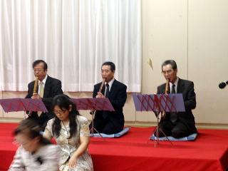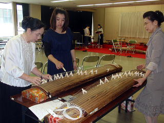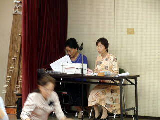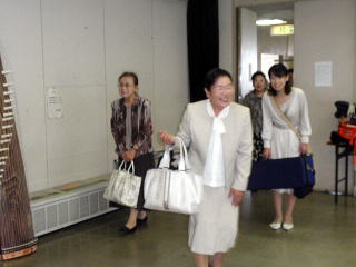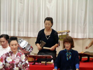 やはり淀の会でございます。 前日の雨もすっかり上がり、 秋晴れの暖かな一日となりましたこの日、 淀の会・第一回打楽器研修会が 楽しく和やかに開催されました。 ![]() ここ数年、打楽器やパーカッションを 受講される生徒さんが増え、 毎回楽しく、またご熱心に学んで下さいますもので、 その方々にも是非、日頃の成果をお客様の前で、 ご披露出来る場を作って差し上げたいと言う思いで、 この度実現致しました。 当初考えておりました企画よりも、 とても立派な研修会となり、 出演者の方々は、 この日を迎えるにあたりまして 『ドキドキワクワク』、 緊張感と楽しみが 入り混じっていたのではないでしょうか。 何度も何度も納得の行くまで練習を重ね、 それでもまだ自分のものに出来ない・・・ と言う思いを抱えながらの 本番であったと思いますが、 練習の成果は何方も確実に発揮されておりましたし、 全て結果ではなく、 本番を迎えるまでの意欲や過程が 人には大切なことでございますので、 この度、参加された方皆様に 敬意を表したいと思います。 この日、初めての打楽器研修会 と言うことでございまして、 素敵な研修会にしたいと言う思いから、 色々と準備を致してまいりました。 集合時間になりますと 皆さん続々と到着でございます。 ![]() それぞれが頑張って練習に励んでまいりました。 打楽器での初のステージ演奏を録音し、 終わりましたら、 各演奏者にそれをプレゼントする ・・・と宗家先生がご提案下さいましたもので、 音響テストも念入りでございます。 ![]() このようにシンバルや オーシャンドラムなどの 楽器の音響テストも致します。 ![]() そしてテストが終わりましたら、 次に録音担当の方々への説明もされます。 皆様の演奏を きちんと録音しなければなりませんので、 録音担当の方も緊張致しますね。 ![]() そして各係りの方々は 早急に準備に取り掛かりまして、 会場はあっと言う間に完成でございます。 【接待係の方の買出し風景】 ![]() 【皆さんで琴柱を立てる作業】 ![]() 【本日の曲のお調絃をとります】 ![]() 【舞台係によるステージのセッティング】 ![]() ここで各係りの方々にお集まり頂きましての お写真でございます。 接待係の皆様 ![]() 舞台係の皆様 ![]() お調絃係の皆様 ![]() 会場の準備がほぼ整いましたところで、 宗家先生がお見えになられまして、 全員でご挨拶を致します。 ![]() ![]() 拝見致します限り「まさに親子!」の ペアールックでのご参加もございました。 ![]() そして、本日ご協力を頂きます尺八の先生方 お三名様もいらして下さいました。 「盛りだくさんのプログラムでございますので、 一日お世話になりますが、 どうぞ宜しくお願い致します。」 ![]() いよいよ本番スタートでございます。 本日の打楽器研修会のプログラムは全6曲♪ 1.雅なる堺 佐々木愛美作曲 2.山里の春 森岡章作曲 3.砂山&叱られて 佐々木愛美編曲 4.夢はマーチにのって 野村祐子編・作曲 5.想い出をあなたに・・・ 佐々木愛美編・作曲 6.五丈原 野村正峰作曲 まず初めの曲は、【雅なる堺】でございますが、 この曲の打ち物をご披露される生徒さんは五名。 その演奏致します順番も、 公平にクジを引きました。 ![]() ![]() 五名の中でのトップバッター。 さぞかし緊張された事でしょうね。 お太鼓の音はとてもしっかりとされていて、 演奏するお姿もしなやかで美しく、 打楽器演奏では 安定感を持っておられる方でございますので、 安心して拝聴させて頂きました。 聴く方に分かるか分からないくらいの事でございますが、 音をフォルテに持っていこうと致しますと、 少し速くなる傾向がございましたので、 CD製作の際には心がけられると よろしいかと思います。 演奏が終わりましたところで、 録音出来ていないと言うハプニングがございましたが、 順番の最後にもう一度演奏させて頂けたわけで、 皆様より一回多く ステージを踏ませて頂けてラッキーでしたね。 トップバッターの方が演奏している間、 次の出番の方々は緊張されながら 待機致しておりました。 ![]() 【雅なる堺】 お二人目の演奏でございます。 ![]() ![]() 来月、ご出産予定の若手生徒さんでございます。 大きなお腹をされながら 「ギリギリまで頑張ります♪」と 、いつも前向きなチャレンジャーさん。 お箏や十七絃、お三絃に打楽器となんでもこなされる その姿勢と頑張りには脱帽でございます。 この度の打楽器研修会では 【雅なる堺】の打ち物をお選びになられましたが、 お腹のまん前でお太鼓をポンポン鳴らして、 きっと赤ちゃんはびっくりされたしょうね。 さぞかしリズム感のある娘さんに なられることでございましょう。 やはりお腹の赤ちゃんを気遣ってでしょうか。 全体的に優しい音色でございましたが、 ミスをされる事無く最後まで演奏されました。 ひたすら撥を振り リズムの練習をされていたお姿が 印象的でございました。 ![]() 尺八の諸先生方も繰り返し繰り返し、 この曲を