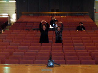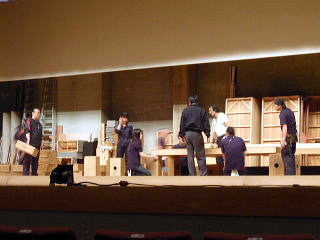 平成23年度、 淀の会の大きなステージは、 本日のこの【芸能百華】で締めくくりとなりました。 清々しく空気の澄んだこの日、 会場となります堺市民会館へは 早朝より出かけました。 開演は10時でございますが、 8時半からのゲネプロに向けまして 尺八の諸先生方も、ご遠方のところを お時間に合わせて下さいまして有難うございました。 毎年のことでございますが、 オープニングを飾らせて頂くにあたりまして 前日の準備が、遅い時間に行われます。 前日19時半に会場に集合致しまして お筝のお調絃ですとか、舞台のセッティングを行い 当日を迎えるわけでございます。 ![]() 会場に楽器類が到着いたしましたら 皆さんで運び入れます。 舞台係りの方は立奏台や 見台の組み立てを行って下さいます。 ![]() そして、お調絃係りさんは 出演者分のお筝のお調絃を、 素早くとって下さいます。 ![]() ![]() お調絃の済みましたお筝は、 舞台監督様よりOKが出ましたら 直ぐにステージにセット出来るように、 ステージへ上がる階段まで忍びより準備致します。 ![]() ![]() このようにお筝以外にも、 ステージで必要なものは全て準備致します。 ![]() ![]() この頃ステージでは、まだまだ舞台監督様を頭に、 舞台さんや音響さん、照明さんが 舞台の調整やテストを行っておられます。 そして、淀の会のステージで使う尺台を、 舞台の方が組み立てて下さり もう直ぐ私たちの出番でございます。 ![]() それら舞台のテストが終わり、 尺台が組み立て終りましたのが21時15分。 さて、これからが淀の会の 舞台セッティングの始まりでございます。 お筝とお筝の間隔や、 マイクの位置を確認致します。 ![]() ![]() また、お筝以外に 打楽器も色々と使いますもので、 それらの準備も致します。 ![]() 全てのセットが完了致しましたら、 宗家先生が会場側へ降りて下さり お客様からご覧頂いたステージの配置を 確認下さいます。 ステージより少し離れたところから 大きな大きなOKを下さいましたよ。 ![]() 僅か20分ほどで、 舞台のセッティングが出来ました。 早かったですね(^^) ![]() 皆様、遅いお時間まで本当にありがとう。 いよいよ当日でございます。 ![]() 朝の8時に皆さんお集まり頂きまして、 まずは昨夜に舞台セット致しておりましたお筝の見直しを、 お調絃係りの方が致します。 ![]() 一方楽屋では、お互いに 衣装のチェックなどを致しまして、 とても和やかな雰囲気でございます。 ![]() ![]() そうこう致しております間に、 宗家先生も会場にお見えになられました。 ![]() そして出演者の皆さんはステージへ上がり始め、 少しずつ緊張感が増してまいります。 ![]() ![]() ![]() いよいよ開幕でございます。 「待ってました淀の会!」と、 会場のお客様からかけ声を頂戴致しまして 出演者の皆にも気合いが入ります♪ ![]() ![]() とても緊張感のある 素晴らしいステージになりました。 ![]() ![]() 今年最後の大きな大きなステージを、 皆様のお力で素敵に終えることが出来ました。 ご協力下さいました尺八の諸先生方、 本当に有難うございました。 ![]() お客様方にも大変ご好評でございまして、 お会いする方々に 「素敵なステージでしたよ」 とお声をかけて頂き、 何だか達成感が後から後から湧いてまいりました。 演奏が終わりまして 出演者で記念撮影を致しました。 ![]() 続きの懇親会の模様は後編へ。 |