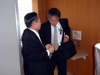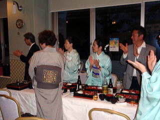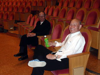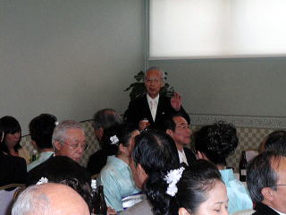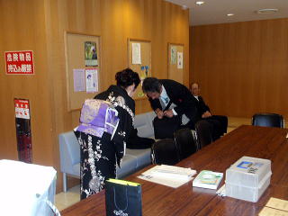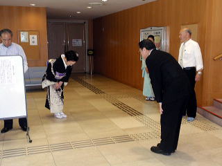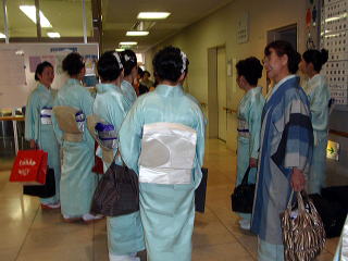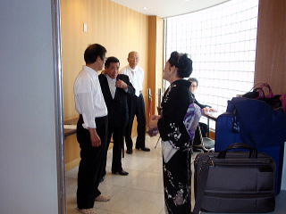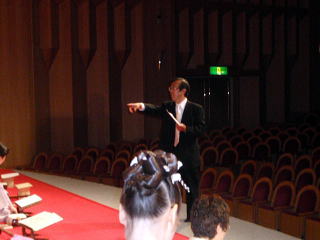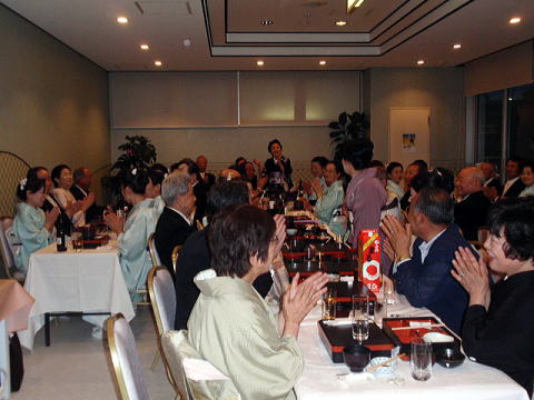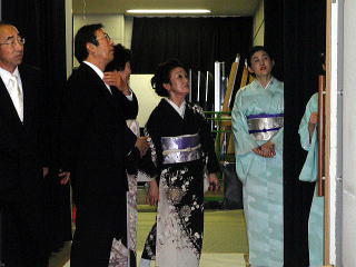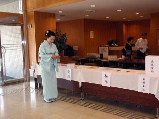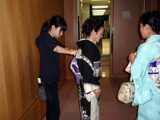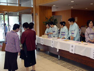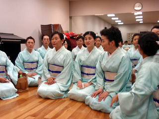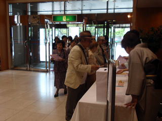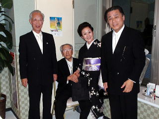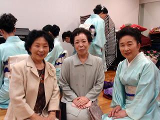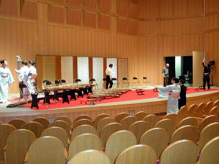 ![]() そして色々な準備に取りかかるわけですが、 ここで本日の撮影を依頼をさせて頂きまし たカメラマンの方もお見えになり、 会長・副会長がご挨拶致します。 ![]() 準備が一段落致しましたら最終確認のミーティング、 そして少し早い昼食を済ませ、 ゲネプロ(舞台リハーサル)と 音響・照明のテストを致します。 ![]() ![]() ![]() ![]() いよいよ開場の時間が迫ってまいりました。 ![]() 受付を担当させて頂く皆さんも、 準備や打ち合わせに大忙しでございます。 ![]() そして開場の時間となりまして、 外でお待ち頂いておりましたお客様が 一斉に受付に向かわれます。 ![]() ![]() 「いらっしゃいませ」 「ようこそお越し下さいました」 今日の演奏会に出演されない淀の会のお仲間も 多数会場までお越し下さいました。 ![]() 宗家先生とご挨拶です。 子育て真っ最中の方も、 大変お忙しい中をお越し下さったのですね。 ありがとうございました。 ![]() 13時半の開演になりますと、 まず初めに新会長の 佐々木洋子先生よりご挨拶がございまして、 続いて本日のプログラムに移るわけでございますが、 今年の会員有志によります披露曲は、 序曲の【紀伊の旅】 そして終曲の【雅なる堺】でございました。 ![]() ![]() ![]() 度重なるリハーサルを行いましたにもかかわらず、 残念ながら成果を出すことが出来ない演奏となりましたが、 お客様からは温かい拍手を頂戴致しまして ありがとうございました。 そして私たち淀の会としての出演曲目は 【編曲八千代獅子】と【北海民謡調】の2曲でございましたが、 まずまず満足のいく演奏が出来て良かったと思っております。 ![]() 私は今まで数多くの演奏会に出演してまいりましたが 今回の【編曲八千代獅子】の舞台ほど、 気持ちの落ち着かない緊張いっぱいの演目は なかったように思います。 合奏9小節目の後、全てのパートの音がなくなり 私の演奏するパートの一筝だけが会場に響くあの瞬間 どんな顔で演奏していたことでしょう。 Mさんと一つの音にしなければ・・・と心がけ、 絃間違いや押しの音に注意を払い 無事に何とか弾き終えた時は、 肩の荷が下りた感でいっぱいでした。 私にとりまして忘れられない曲となりました。 舞台出演直前まで、私にプレッシャーをかけながら(?)も ご指導下さいました宗家先生、本当に有難うございました。 (堺市在住 M.K 平成9年入門) ![]() 【編曲八千代獅子】私は初めて頂いた曲でした。 双調のお調子の曲で、 たくさんの強押し弱押しがある曲です。 演奏会の前日まで流れに乗れず、 1筝・三絃・十七絃・尺八の音を聴こうとしても どうしても一人で走ってしまう恐さに 身体が固くなってしまいます。 演奏会の前日午後、愛美先生のお教室で急遽、 合奏の時間を作って頂きました。 愛美先生、そして職格者の方々が 1筝・2筝・十七絃・三絃で合奏の体制を作って下さり 何度も何度も合わせて下さいました。 演奏会当日は恐い恐い朝を迎え、 家を出るまで練習しないではいられません。 * 譜面から目を離さない *音を聴き合う *動きを合わせる いつも宗家先生に教わっている言葉を 必ず守って弾く決心をして、舞台に上がりました。 本当に緊張の舞台でした。 前日のリハーサルがなければ、 間違いなく大きなミスをしていたと思います。 宗家先生、愛美先生、 そして大先輩の皆様方、本当に有難うございました。 (堺市在住 K.I 平成5年入門) ![]() この堺三曲協会定期演奏会では、 お筝とお三味線で出演させて頂きました。 北海民謡調のお三絃では、 宗家先生に何度もお教え頂き また、舞台では宗家先生のお隣に席を頂き 耳で音を、目で撥の動きを見ることが出来るように ご配慮を頂きました。 当日は朝から緊張し、 家でも一度は弾いて臨んだのですが、 思う音が出せず却って落ち込みました。 それでも舞台上では姿だけでも 堂々としていようと努めて夢中で弾きました。 終りの頃には先生の動きが見える様になり、 宗家先生には感謝申し上げます。 皆様には時々耳障りな音が聞こえましたら それはきっと私です。「ごめんなさい・・・」 (堺市在住 E.S 平成18年入門) ![]() 新芽が萌え出だし青葉がひとしお鮮やかに照り映え 日差しも輝きを増してきました。 宗家先生、愛美先生、お尺の諸先生方におかれましては 益々御健勝のこととお慶び申し上げます。 日頃は大変お世話になり心より感謝致しております。 この度、堺三曲協会定期演奏会に 初出演させて頂き有難うございました。 今回は、北海民謡調でお三絃を弾かせて頂きました。 大ホールでのお三絃は初演奏でしたが 諸先輩方にお力添えを頂き 落ち着いて最後迄弾き終えることができ感激しております。 自身の未熟さは自覚してはいますが、 皆様のリズムとテンポの流れに心地良く乗れたのではないかと、 人知れず喜びが湧いてきます。 また、聴衆の皆様と一つに溶け合った一体感の中に身をゆだね、 演奏を楽しむことが出来たような気がします。 この初出演を心の糧と