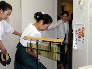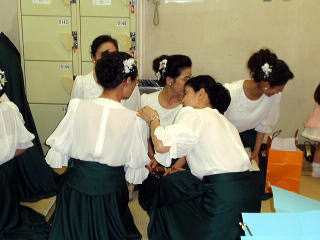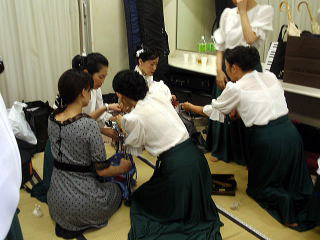 ここ数日間で、朝晩と気温が下がり、 また日中も爽やかなお天気が続き、 ようやく秋の気配を感じられるようになりました。 第43回都山流大阪府支部定期演奏会の ステージに向けて、 リハーサルを重ねてまいりました 淀の会でございます。 ![]() その成果が表れたのでございましょう。 当日のステージは、会員が皆、口を揃えて 「楽しく演奏が出来ました」 と言う嬉しいものでございました。 ![]() この日の楽屋入り集合時間は11時半。 洋装(ドレス)での演奏でしたもので、 比較的楽なスタートでございました。 淀の会の出演者が多数でございますので、 楽屋もちょっぴりごった返しております。 ![]() そのような中で、今回もパーカッションを 取り入れておりますので、 楽器の組み立てが大変でございますね。 組み立てを担当して下さる皆さん、 ありがとうございました。 ![]() そしてその組み立てた楽器類を、 ステージ袖まで移動して頂かなくてはなりません。 ![]() 特に重いシンバルなどは、 ロングの巻きスカートでの移動は 大変なものでございますが 淀の会の皆さんは本当に快く動いて下さいます。 ![]() さていよいよ本番でございます♪ 今年の曲は野村祐子先生編・作曲によります 【夢はマーチにのって】でございます。 この曲はクラッシック行進曲をメドレーにされた作品で、 何方もご存知の曲が5曲入っております。 最後の【ラデッキー行進曲】では、 会場のお客様から手拍子を頂戴致し、 そのお蔭で私たちも最高に気持ちよく 演奏させて頂くことが出来ました。 ![]() ![]() 【門下生の声】 ちょうど2年ぶりの舞台復帰になりました。 2年前、つわりで出演できなかった “都山流大阪支部定期演奏会” あれからちょうど2年になりますが、 またこのような大きな舞台に立たせていただくことができましたこと、 大変嬉しく思っています。 会場や楽屋の雰囲気、お調絃や見台の準備、 演奏前の緊張感などなど、 なんだか 久しぶりの体験でワクワクしました。 久しぶりの舞台はライトがとても眩しく感じました。 緞帳があがり、大勢の方の拍手が聞こえ、 宗家先生の合図で一斉に弾き始める… 心地よい緊張の中、とても楽しく演奏することができました。 ありがとうござい ました。 宗家先生、愛美先生をはじめ、 淀の会の皆様にはいつも本当に良くして頂き、 私も家族も皆、喜んでおります。 なかなか、リハーサルや、 準備・片付け等に参加できないにもかかわらず、 いつも暖かく迎えてくださる淀の会の皆様には本当に感謝致しております。 また、愛美先生には、いつもお稽古の時には 子供を連れていってご迷惑をかけ申し訳なく思っていますが、 こうして続けてこられ、このような舞台に立たせていただけるのは、 先生のご配 慮があってこそと感謝致しております。 いつも私だけでなく、家族にまで気にかけてくださり、ありがとうございます。 まだまだご迷惑をおかけすることもあると思いますが、 これからもどうぞよろしくお願いいたします。 (滋賀県東近江市在住 Y・Y 平成12年入門) 本番を迎えるまでの度重なるリハーサル。 宗家先生には最後の最後まで、 熱心にご指導賜りましたことを 感謝申し上げます。 演奏終了後の楽屋でのひと時 ![]() そして演奏が終わり「ホッ」と致しましたら、 ちょっぴりお腹が空いてまいりまして 宗家先生が皆を、 お食事に連れて行って下さいました。 ![]() ここでは、今日のステージでの感想や反省を 楽しくお話しながらのお食事でございました。 ![]() ![]() 楽しい時間はとても早く過ぎるものでございまして、 ここでお開きでございます。 帰られる方もおられますが、 ここからまた会場に戻り 他のお社中の演奏を聴かせて頂く方もございました。 ![]() 本日のプログラムが全て終了致しました後は 毎年のように大阪府支部よりパーティーにご招待頂き 美味しいお食事を頂きながら 色々なお竹の先生方とお話をさせて頂きます。 ![]() ![]() ![]() 今年は【星田一山先生】ともご一緒に 写真を写させて頂きまして、有難うございました。 ![]() ![]() 今年もこの大きな演奏会を終えることが出来まして、 ホッと致しております。 淀の会の年間行事も、 あと残り僅かとなってまいりましたが、 全力で励んで参りたいと思います。 |