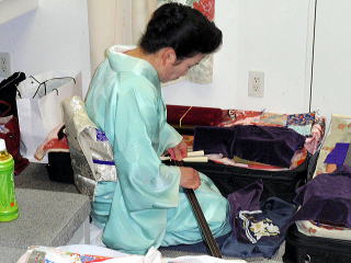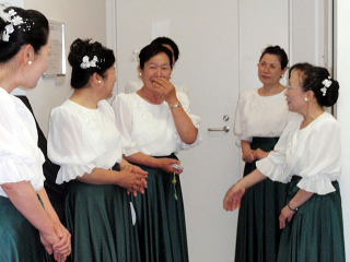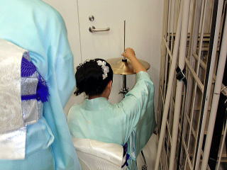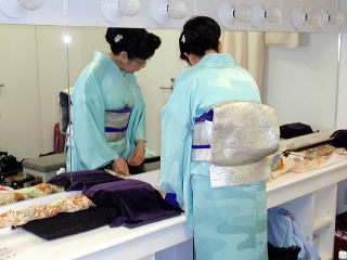初めに、上田流尺八道各位様におかれましては この度【創立95周年】を迎えられましたこと 誠におめでとうございます。 そしてこの大変おめでたい記念演奏会に、 私たち【淀の会】も参加させて頂きましたことを 心より厚く御礼申し上げます。 この日は初夏のような良いお天気に恵まれまして、 会場となりますこの新しいサンケイブリーゼホールに、 私達も気持ち弾む思いで向かわせて頂きました。 ![]() ![]() 本当に素敵な真新しいホールに 私達会員も感激致しておりました。 ![]() こちらが私たち【淀の会】の楽屋でございます。 ![]() 楽屋入りを致しましたら、 直ぐに各係りに分かれてのお仕事にとりかかります。 【お三絃の調絃係り】 ![]() 出演はまだまだ先ではございますが、 このようにして糸を伸ばせるところまで 伸ばしておくのです。 とても根気の要る大変なお仕事でございます。 そして【お筝の調絃係り】 お筝のお調絃は楽屋では致しません。 演奏会時には必ず「お調絃ルーム」がございまして、 他のお社中の方々と順番に使わせて頂きます。 お調絃は演奏以前の大変なお仕事でして ステージで演奏するにあたりましての ‘命’でございますので 気を抜くことは許されませんね。 ![]() そしていつも陰でお仕事をこなして下さるのが、 このパーカッションの準備をして頂いてる方々です。 (つい忘れがちなパーカッションの準備。) 責任を持って確実に用意をして下さるお姿には、 いつも感謝でございます。 ![]() それから舞台係りがご準備下さる 立奏見台の高さ調節・・・と言うものも それはそれは大変なお仕事でございます。 客席から御覧頂いた舞台の統一美!と言うことと、 演奏者が演奏しやすいように・・・ と言うことを考慮しての調節は、 大変なものなのですよ。 ![]() このように致しまして各係りの方々が、 それぞれのお仕事を確実に 責任を持ってこなして下さいますので 本当に素晴らしいと思っております。 さて、ここからはステージのご紹介をさせて頂きます。 この日【淀の会】が演奏させて頂きました曲は3曲♪ どの曲もリハーサルを積み重ね、 この日に向けて頑張ってまいりました。 山里の春(作曲 森岡章) ![]() ![]() この曲は今までに経験のない ピアノとのコラボ曲でございまして 出演させて頂きました会員も、とても新鮮な気持ちで 演奏させて頂くことができ楽しかったです。 そしてピアノの他には、鶯の声やウッドブロック 鈴にトライアングルにお太鼓 などと言った楽器も参加させて頂きました。 ![]() 淀の会会員のご家族様より、 とても嬉しい感想を頂戴致しましたので、 ここでご披露させて頂きます。 淀の会のステージはいつもながら 都会的センスに溢れ、 演奏者の方々も自信を持って 演奏されているのが伝わってきます。 ハイセンスとパワフルなステージは圧巻です。 私自身も、仕事や趣味など自信を持って行えば、 周囲の方々に感動を与えられると実感した一日でした。 編曲八千代獅子(作曲 宮城道雄) この曲はお筝や尺八は勿論、 お三絃に十七絃、そして鼓・・・ と言った曲で構成されております 「大合奏曲」でございまして 私たち【淀の会】のお三絃メンバーは 恒例の裃をつけてのステージです。 ![]() ![]() ![]() まず、上田流95周年記念の演奏会という大舞台に 立たせていただいたことを心より感謝致します。 この日は沢山のお社中の方々がいらっしゃり、 時間が空けば客席で拝聴することが出来ました。 『山里の春』は私は出演致しませんでしたので拝聴させていただきました。 打楽器、ピアノと琴、お竹の調和がとても美しく、 まるで本当に麗らかな春の日差しを浴びているようでした。 もっともっと長く聴いていたかったです… 次に私も出演させていただいた『編曲八千代獅子』… これは満足いかない結果となってしまい 、宗家先生のおっしゃる「舞台は生きている」の意味を 怖いくらいに実感致しました。 私なりに必死で弾き込んできたつもりでした。 ですが、糸間違いをせず完璧に弾けても、 やはり周りと合わせるということは、 とても大変で難しいことなのだ…と、 悔しい気持ちでいっぱいです。 私を演奏者の一人に選んでくださった宗家先生、 一生懸命教えてくださった愛美先生、本当に申し訳ありません… 最後は『五丈原』。 力強く伸び伸びと弾くことができ、まとまりもあったと思います。 そして独奏を弾かれた方のとても綺麗な響きには聴き惚れました。 楽しく演奏することができましたが、 反省点も沢山あり、色々と勉強になる演奏会となりました。 最後になりましたが、宗家先生、愛美先生を始め、 リハーサルの一度しか顔を出すことが出来なかった私を 温かく受け入れてくださる淀の会の皆様には、 いつも感謝の気持ちでいっぱいです。 私にとりまして、淀の会はいつでも帰ることの出来る場所であり、 皆様は血の繋がった家族のような存在です。 今回の気持ちを決して忘れず、 これからも練習に励みたいと思ってお