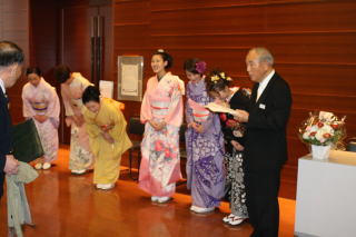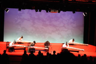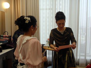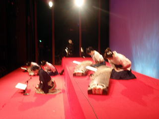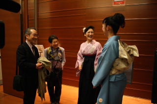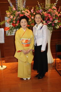 記念すべき初の 【邦楽サロン 佐々木愛美作品コンサート】を、 大丸心斎橋劇場様に於きまして、 開催させて頂く運びとなりました。 ![]() この日、あいにくの雨模様になりまして、 お足元の悪い中にもかかわりませず、 沢山の方々にご来場頂き、 満席の下に開演させて頂くことが出来ましたことを、 厚く御礼申し上げます。 そしてロビーにも、 多くの方よりお祝いのお花を頂戴致しまして、 とても華やかでございました。 本当に有難うございました。 ![]() この日の開場は14時、 開演は14時半でございましたが、 私たち出演者やお手伝いにお越し頂きました方は、 朝の9時半から会場入りを致しまして、 準備に追われます。 当日、快くお手伝い下さいました皆様でございます。 ![]() ![]() 当日はCDと楽譜の販売コーナーも 設けさせて頂きました。 ![]() ![]() ロビーで忙しく準備が進む中、 舞台では午前中から開場時間までの1時間半ほどで、 ゲネプロ(舞台リハーサル)を全曲行いました♪ ![]() ![]() そして開場時間が迫ってまいりますと、 出演者の皆もソワソワと・・・。 ![]() 楽屋の風景です。 ![]() ![]() ![]() ![]() 「本日は、『佐々木愛美作品コンサートに、 ようこそお越し下さいました』」 開場させて頂きます。 ![]() ![]() そして、いつも大変お世話になっております 「山口典子堺市議会議員様」も、ご多用の中 コンサートにお越し下さいまして有難うございました。 典子先生のブログにも、 この日のコンサートの模様を 載せて下さっております。 ![]() 開場前より、ご来場下さいました皆様には 長時間お並び頂きましたそうで、 お疲れになられた事と思います。 申し訳ございませんでした。 さていよいよ開演でございます。 本日のオープニングを飾らせて頂く曲は、 編曲者本人も大好きと言う 平成18年編作曲 【ロシアの大地】でございます。 編曲活動を始め、2曲目に手掛けたこの【ロシアの大地】は、 宗家から依頼された『ヴォルガの舟歌』と、 編曲者自身が好きな 『ドナウ河のさざ波』『ポーリュシカ・ポーレ』の3曲を、 組み入れた曲でございます。 演奏者全員の呼吸が合わないと、 本当にバラバラになってしまう難曲でございますが、 その難しさとはうらはらに、とても美しいメロディーを奏でます。 そのメロディーを耳に致しますと、 自然に涙が出てくる・・・と仰る方もおられます。 ![]() ![]() 2曲目の【ねむのお里】と言う曲は、 平成22年全邦連主催 『和楽器による作詞・作曲コンテスト』に於きまして 佳作を受賞した作品でございます。 今、淀の会の若手会員の中では、 母親になられる生徒さんが多く、 そんなお忙しい中でもご自分で時間を見つけ出し、 ご家族のご理解とご協力の中、 お箏を続けて頑張っておられる・・・。 そういった生徒さん方に、 思いを込めて手掛けた曲でございます。 それ以外の方々にも 癒しの空間を持って頂きたいと思いまして、 温かく柔らかい曲に仕上げてみました。 本日のコンサートでは、 特別に二胡を旋律に用いての演奏で お楽しみ頂きました。 ![]() 3曲目は【想い出をあなたに・・・】 この曲は平成20年に編作曲したもので、 ある邦楽の演奏会で 会場の皆様にアンケートを頂いたところ、 お客様の年齢層が 50~60歳の方が多いのが分かりました。 それでは、その年代の方々が 楽しんでお聴き下さるような曲を作ろう!と考え、 思いつきましたのが、 昔懐かしい映画音楽などどうかしら?でございました。 そして淀の会の生徒さんの中でも、 そのあたりの年代の方々に演奏して頂けるように、 弾きやすい手を作り、 【平成21年度・第7回淀の会定期演奏会】で 初演披露させて頂きました曲です。 ![]() そして、ここでお箏の演奏の間に、 本日助演下さいました野村峰山先生と 永廣孝山先生のお2人に、 野村峰山先生作曲の【風吹く】を吹奏頂きます。 ![]() 両名の先生方の吹奏は、 尺八愛好家の方々はもちろんの事、 素人の方の心にもきっと響いたことでございましょう。 お聴き下さいました皆様は、 とても贅沢なお時間を過ごされたことと存じます。 野村峰山先生、永廣孝山先生、 素敵なお時間を有難うございました。 それでは、後半のステージに続きます。 5曲目は、親子・姉妹・3代によります演奏でございます。 宗家が三絃を、そして宗家の長女が二胡、 次女愛美が箏、孫娘が17絃を弾き、 娘同然であります宗家の1番弟子と一緒に、 この時節に相応しく、 『うれしいひなまつり』を編曲致しました 【春うらら】を演奏させて頂きました。 ![]() 後ろに映し出される『桜』は、 この度発売させて頂きました 【佐々木愛美作品集CD】の ジャケットになっている桜なのですよ。 お分かり頂けましたでしょうか。 続きまして6曲目の【竹田幻想子守唄】は、 佐々木愛美の処女作品でして、 当初は17絃のみの3パート編成で 作り上げた曲でございました。 17絃のみでの演奏も、 何回かステージを踏ませて頂きましたが、 色々な方からのアドバイスを頂戴致しまして