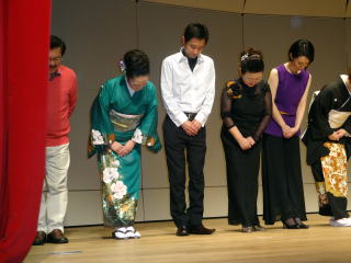 まず初めに、筝三絃なかにし様が、 創立60周年を迎えられました事、 誠におめでとうございます。 そして、その記念コンサートを開催され、 日頃なかにし様とゆかりのある、 邦楽界の色々な先生方がご出演され、 佐々木愛美も、その中でご一緒させて頂きましたことに、 幸せを感じております。 プログラムは全8曲。 その中で、一番にステージを 踏ませて頂きました私たち・・・。 曲は、石川憲弘先生作曲で 初演の『双宴』でございました。 本番を迎えるまでに、 色々な苦労がございましたが、 当日の演奏は息の合った、 とても楽しいステージでございました。 ![]() ![]() 淀の会メンバーも、宗家先生を筆頭に 大勢聴きに来て下さいました。 とても嬉しかったです。 有難うございました。 ![]() 8曲全てが演奏し終わりましたら、 出演者全員がステージに上がり、 最後お客様にご挨拶をさせて頂きました。 ![]() ![]() どの演奏に関しましても、 聴きにいらして下さいましたお客様方が とても真剣に聴き入って下さり、 温かい拍手を下さいました。 とてもとても素敵なコンサートでございました。 |