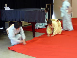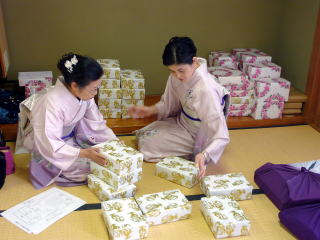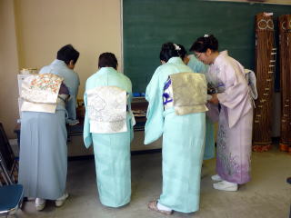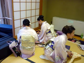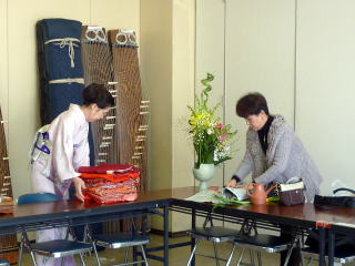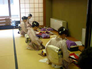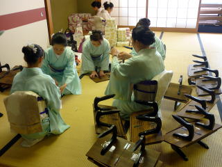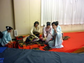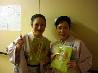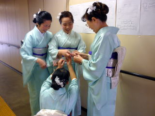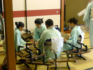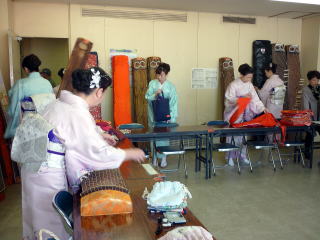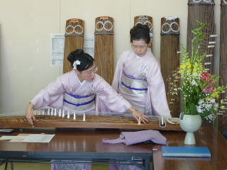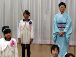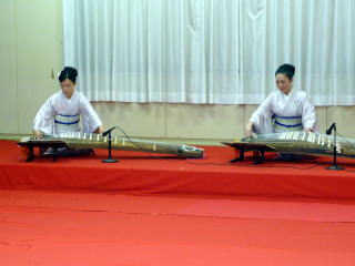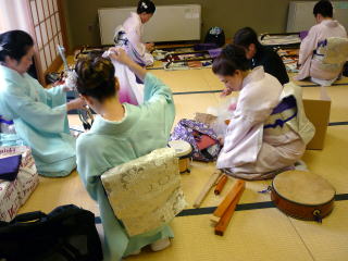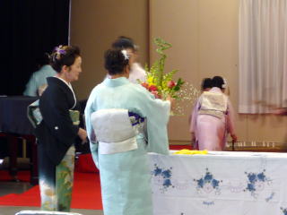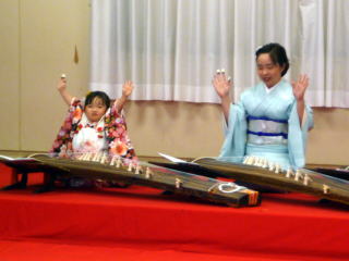 毎年、1月末の休日を予定致しております 【淀の会新春お弾き初め会】 一年を通しまして、数多くステージを 踏ませて頂く私たちでございますが、 人数的なことや、それぞれのご予定がございまして、 会員一同が揃っての行事というものは なかなか難しいものでございます。 ですが、この年頭のお弾き初め会には、 出来るだけ多くの会員が集い、 皆で演奏し、今年一年の祈念を致します。 今年も、お子様方の演奏がありましたり、 昇格披露曲が3曲もございましたり、 また、【淀の会滋賀支部】からも 新人の生徒さんがご参加下さいましたりと、 ますます賑やかな淀の会に、 「バンザイ!」でございます。 それでは平成24年度、 【淀の会新春お弾き初め会】を始めさせて頂きます。 毎年のように、開始時間の約3時間前より、 各係りごとで集合をかけまして、 準備に取り掛かります。 【接待係り】の皆様は、 ご来賓下さいます尺八先生方のお茶や、 会員の皆様のお茶やお食事のご用意を、 素早く行って下さいます。 ![]() ![]() ![]() 演奏の前に、腹ごしらえを・・・と、 ご準備下さるお食事の数々・・・。 【舞台係り】の方々は、ステージを作る前に、 細かい準備が色々とあるのでございますよ。 こちらも立派な準備でございます。 ドアが閉まらないように、 引っ張っておく「紐」を編んでおります。 ![]() ![]() そして、皆さんがお揃いになられましたら、 責任者中心に、ミーティングが行われます。 ![]() 最近の淀の会には欠かせない打楽器の準備も、 しっかりと行って下さいます。 ![]() また、毎年ステージに飾るお花を活けに、 お越し下さいます孫弟子さん。 とっても素敵でございましょう。 ![]() 総務の方も、宗家先生から送られる 記念品の段取りに、お忙しそうでございますね。 ![]() 別のお部屋では、お調絃係りの方々が、 準備に追われておられます。 今日一日、皆様が演奏されるお箏のお調絃を、 全てとられるのですものね。 大変なご苦労だと思います。 ![]() ![]() ![]() そんなこんなで、各係りの方の準備が整いかけました頃には、 宗家先生がお見えになり、皆様でご挨拶を致します。 「私たち、宗家先生のお迎えです」 ![]() ![]() ![]() さてさて、ここよりステージ会場に移りまして、 皆さんで準備に取り掛かります。 主に、舞台係りさんが中心になりまして、 ステージを作って下さいます。 ![]() ![]() ![]() ![]() その後には、音響係りの方々が、 マイクのテストを致します。 いつもこの音響で失敗してしまうのですよね~。 今日はうまく出来るといいですね。 ![]() ![]() それでは、本日の1曲目、 宮城道雄編作曲【北海民謡調】でございます。 ![]() ![]() 盛大にオープニングを飾りましたあとは、 可愛らしいお子様のステージをご覧頂きます。 宗家先生が、小さなお子様でも楽しんで弾けるように・・・と、 『めだかのがっこう』と 『むすんでひらいて』を編曲して下さいました 【童謡二題】でございます。 ステージ前の意気込みでございます。 ![]() お2人とも、1年前のステージに比べますと 大きく成長され、ご自分できちんと お箏を弾けるようになられましたね。 それぞれに、お母様、おばあちゃまと 一緒にステージに立ち、立派に演奏する事が出来ました。 ![]() 今年のお弾初め会には、 4歳四ヶ月になる娘と舞台に立たせて頂きまして、 宗家先生、愛美先生、清水先生、淀の会の皆々様、 そして温かく見守ってくださいました尺八の諸先生方、 本当に有難うございました。 昨年は3歳でしたので、 娘の隣に一緒に座って手を持っての演奏でしたが、 今年は宗家先生から「一人で弾くのよ」とお聞きし、 自分が演奏する北海民謡調や編曲八千代獅子よりも、 娘と出る童謡の舞台の方が気になって気になって、 今日のこの日が来るまでとてもとても不安でいっぱいでした。 ちゃんと弾けるのか、間違っても嫌にならず 最後まで弾き通すことが出来るのか、 そして「礼!」と号令がかけれるのか・・・ それはもう親として不安なことが沢山ありました。 でも、リハーサルの時に宗家先生が 「間違ってもいいのよ。一人で舞台にあがるということ、 間違っても弾くということに意義があるのよ!」 と仰って下さり、少しは不安も軽くなりましたが、 やはり家で練習していると「出来ない!弾けない!」 と泣き泣き練習をする日が多々ありました。 12月から、娘は清水先生に手ほどきを受け、 家では親の私が練習を見ました。 2ヶ月しかなくて大丈夫なのかな?と思いましたが そこはやはり子供で覚えは早かったです。 昨年は手を持たないと弾けなかった子が、 今では一人で弾けるようになって・・・ 本当はそれだけでも私はうれしい事なのですが、 でも娘は間違えることが嫌らしく、完璧に弾きたいみたいでした。 横で絃を指差ししてあげると間違えずに弾けますが当日は一人です。 指差しなしで弾けるのか・・・娘も不安だったのでしょう、 お弾き初め会一週間前から自ら進んで 幼稚園から帰って毎日練習