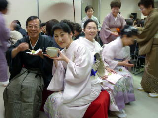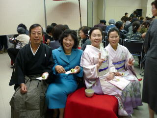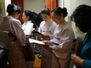 今日は『台風並みの風の強い雨模様』 と言う予報でございましたが、 堺の朝はそれらしい気配もなく、 集合時間の9時半には まだ雨も降っておりませんでした。 今年で第7回を迎えられました『彩桜忌』 いつもは成就山顕本寺で行われますが、 雨が降ることを考慮されて、 直ぐ隣に建ちます女性センター内に 場所を移されての開催となりました。 ![]() 急遽変更になられた会場の準備で、 実行委員の方々はとてもお忙しそうにされておりましたが、 予定の時間通りに開催されました。 ![]() 本日の演奏曲目は【ふるさと民謡浪漫】 演奏時間までもう少しお時間がございます。 控え室では、尺八の先生がステージ前の練習に励んでおられ、 絃のメンバーはそろそろステージに向かいます。 ![]() そしてステージ袖では、 出演者それぞれが最終チェックでございます。 ドキドキですね♪ ![]() ![]() ![]() さて!いよいよ演奏に入りました♪ 野村祐子先生編作曲のこの【ふるさと民謡浪漫】は、 日本各地の民謡を三曲合奏にされたもので、 とても賑やかな楽しい曲でございます。 最後の山形県民謡『花笠音頭』では、 会場の皆様から手拍子を頂きました。 ![]() 演奏者の私たちも、 とても気持ちが高揚致しました。 ありがとうございました。 演奏を無事に終えますと、 ご招待下さいましたお茶席へ寄せて頂き、 とても美味しいお抹茶をご馳走になりました。 ![]() ![]() ![]() ![]() 今日一日心配致しておりました雨風は、 移動の際にはお蔭様で降られることもなく、 山口典子委員長が仰っておられましたように、 天に、そして前山口彩子委員長に 見守られていると感謝致しつつ・・・。 本日は誠に有難うございました。 |