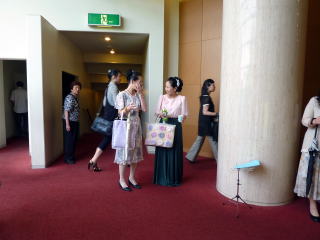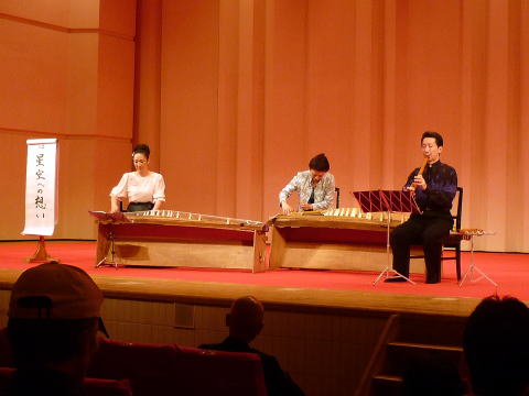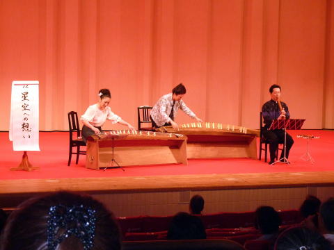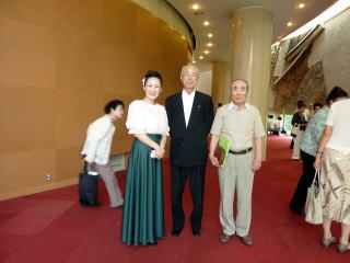 豊中三曲協会 第60回定期演奏会が、 豊中市立アクア文化ホールに於きまして 開催されました事、 誠におめでとうございました。 その演奏会に、 私たちも出演をさせて頂く運びとなりまして 当日を迎えるまで、それぞれが一生懸命 頑張って練習に励みました。 今回は、絃の太田道嶺先生とご一緒させて頂き、 合奏では天城越え・また君に恋してる ラ・クンパルシータの3曲メドレーを、 そして独奏では星空への想いを演奏致しました。 淀の会にとりまして、 初めての試みでありますこの2曲。 とても色々なことを、お勉強させて頂きました。 演奏会当日は、暑さが厳しい中、またご遠方を 淀の会のお仲間、そして淀の会関係の方々も、 多数ご来場下さいまして 会場を賑やかにして下さいました。 ![]() いよいよ、プログラム8番、 大嶽和久編曲 【天城越え、また君に恋してる、ラ・クンパルシータ】の 演奏が始まります♪ ![]() ![]() 此の度、豊中三曲定期演奏会では、 大変お世話になりまして有難うございました。 初めて出演させて頂きますこの舞台は、 いつもと全然違う緊張感がありました。 間拍子の細かい曲ですので、 まず同じパートの方とぴったり息が合うかしら、 少し離れています愛美先生、ニ箏さんの音が聞けるかしら、 絶対糸ミスはしてはいけない~等など、 色々な事が頭をよぎり前夜は珍しく、眠れませんでした。 でも本番は孝山先生の綺麗な音色、 太田先生の十七絃のリズムを聞かせて頂き、 愛美先生、ニ箏さんの音もよく聞こえてきまして、 無事演奏を終える事が出来ました。 それも孝山先生、太田先生、大変お忙しい中、 二度もリハーサルを入れて下さいましたお蔭と 厚く御礼申し上げます。 またそれまでに何度も愛美先生にレッスンを見て頂き、 宗家先生には演奏だけではなく、 演奏する時の顔の表情など、 自分では気が付かない色々な事をご指導頂き、 本番もそれを意識する事が出来、本当に有難うございました。 そして暑い中、淀の会会員の方が沢 山聴きに来て下さり、 これ程心強いものはありませんでした。 深く感謝申し上げます。 又この曲を都山流定期演奏会で演奏させて頂きますが、 今一度勉強をして、いい演奏が出来る様、 努力して参りたいと思います。 (堺市在住 M.S 昭和43年入門) 豊中三曲協会第60回定期演奏会では 大変お世話になりありがとうございました。 永廣孝山先生、太田道嶺先生と ご一緒させていただくことができ、 たいへん光栄に思っております。 このたび、「天城越え・また君に恋してる・ラ・クンパルシータ」の 3曲メドレーを演奏させていただきました。 3曲とも細かい手がおおくパートで息を合わせ、 そのうえでほかのパートの方とも 息を合わせていくのはかなり難しいことでした。 また、曲想にあった弾き方、速さ、間のとり方など いろんな面で学ばせていただくことができました。 このような機会をあたえてください、 いろんな面で指導していただきました宗家先生、 何度も細部にわたってご指導いただきました愛美先生、 ほんとうにありがとうございました。 大変感謝しております。 また、この暑さの中、たくさんの淀の会の皆様、 関係者の皆様にお越しいただきありがとうございました。 見守られながらの演奏、大変心強く感じました。 今回はじめてのことで戸惑い不安になる面も多々ございました。 無事、演奏を終えることができましたのも ひとえに皆様方のおかげだと思っております。 本当ににありがとうございました。 (交野市在住 C.N. 平成3年入門) ![]() 此の度は、豊中三曲定期演奏会に出演させて頂きまして 誠に有難うございました。 永廣孝山先生、太田道嶺先生そして愛美先生と 同じ舞台に立たせて頂きました事を、 とても光栄に存じており、感謝致しております。 「天城越え、また君に恋してる、ラ・クンパルシータ」は 三曲とも曲想が違いますので、 次の曲へ移る部分が一番緊張致しました。 愛美先生のお隣でしたので、一筝はもちろんの事、 三琴・十七絃もよく聞こえ、 孝山先生のお竹の音色に包まれ 迷う事無く演奏させて頂く事ができました。 これも 宗家先生、愛美先生に度重なるリハーサルにおきまして ご指導頂きました賜と深く感謝致しております。 当日はいつもの淀の会の演奏会とは 全く違う緊張感の中、淀の会々員の皆様のお姿が見えた時は、 どれだけ心強く緊張を解して頂いた事でしょう。 厳しい暑さの中お運び下さいまして有難うございました。 又、私の師匠でもあります知珠子先生には、 当日演奏が終わるまで、とてもご心配を おかけした事と思います。 前日夜遅くまでお稽古をして下さり、 孝山先生宅でのリハーサルにお伺いする際にも 相手様に失礼の無きよう 沢山の事をお教え頂きましたお蔭で、 当日を迎える事が出来ました。心より感謝申し上げます。 この度は演奏だけでなく、多くの事を学ばせて頂きました。 本当に有難うございました。 (大阪市東住吉区在住 Y.F 平成15年