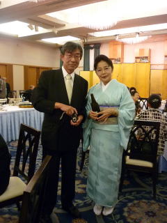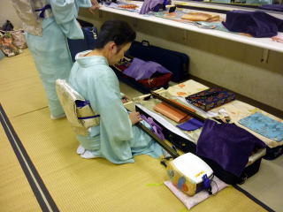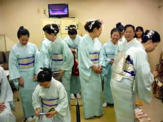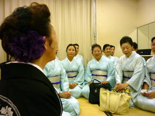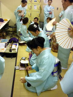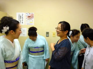 ちょっぴり秋を感じられるように なってまいりました。 午前中は昨晩からの雨が 少し残っておりましたが、 その分気温が下がり、 私たちが出かける頃には雨も上がり、 とても涼しくなりました。 毎年出演させて頂いております 都山流大阪府支部定期演奏会 ![]() 今年の出演曲は月に寄せる日本のうた。 月を題材にした歌が 7曲も組み込まれている この曲でございますが、 今回は時間の関係で、 荒城の月・朧月夜・宵待草 そして月の砂漠の4曲を 演奏させて頂きました。 何方もがよくご存知の曲ですので、 「一緒に口ずさめました。とても良かったですよ」 と、演奏後にはお声をかけて下さる方が たくさんおられました。 お三絃もございますので、 朝、楽屋に入りましたら お調絃係りの方は、 早速絃を伸ばしてお調絃をされます。 ![]() お箏のお調絃係りの皆も、 指定の場所へ行き 素早く準備をしてくれました。 ![]() 本番前には楽屋にて、 お三絃の構えや、絃の感覚を掴むために 宗家先生がお時間をとって下さいました。 これでお三絃パートの皆様も、 少しは気持ちが落ち着かれたようでございます。 ![]() 出演前の楽屋は、 淀の会のブルーの制服を着た皆様で、 ごった返しております。 ![]() ![]() 今回出演されなかった淀の会のメンバーも、 楽屋見舞いに訪れて下さいました。 ![]() 【月に寄せる日本のうた】の他に、 本日もう一曲、永廣孝山先生より ご依頼を頂戴致しまして ステージに立たせて頂きました曲 天城越え また君に恋してる ラ・クンパルシータ の3曲のメドレーを 淀の会の若手メンバーにて 出演させて頂きました。 ![]() ![]() 17絃は太田道嶺先生が 演奏されての絃方合計8名。 皆で呼吸を合わせ、 素敵に演奏出来たのではないでしょうか。 演奏が終わりましたから楽屋にて、 ホッとした表情での記念撮影でございます。 ![]() 演奏のほうは、【月に寄せる日本の歌】も 【天城越え・・・】もうまくいき、 皆さん達成感に溢れておりました。 ![]() 最後に楽屋では、 宗家先生よりお言葉を頂戴致しまして 皆さんここで解散でございます。 ![]() この日、沢山のお客様にご来場頂きまして 本当にありがとうございました。 色々な皆様に「良かったですよ」と、 とても嬉しいお言葉を頂戴致しまして、 清々しい気持ちで終えることができました。 解散後のメンバーのお顔も、 とてもにこやかでございましょう。 皆様、お疲れ様でございました。 ![]() ![]() ![]() ![]() 演奏会後は、都山流大阪府支部様より ご招待を頂きまして、 淀の会からも宗家先生を頭に、 数名参加させて頂きました。 色々なお竹の先生方とお話させて頂き、 とても楽しいひと時を過ごすことが出来ました。 ![]() 最後には孝山先生とも一緒に写して頂きました。 ![]() |