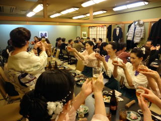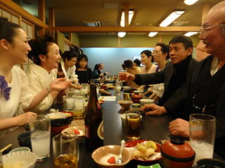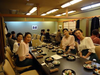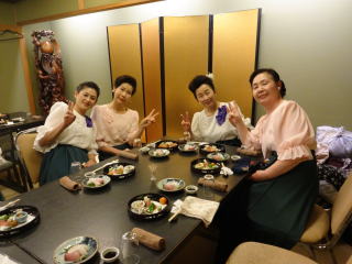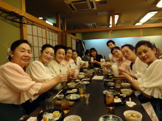 今日は高槻での演奏会。 今回初めて試みたという『糸愉し』の演奏会は、 大変多くのお客様にご来場頂きまして、 大盛会に終えることが出来たそうでございます。 発起人でいらっしゃいます、 お3方の尺八の先生方に於かれましては、 この日を迎えるまでに、 色々なご苦労があったことと存じます。 最後の最後まで、 本当にお世話になりまして有難うございました。 高槻まで出かけるのは 珍しい私たちでございます。 ![]() 高槻駅にて・・・ 今日のこの演奏会には、 淀の会からの選抜少人数で参加させて頂きました。 曲目は2曲。 どちらも佐々木愛美の作品で 【竹田幻想子守唄】と 【想い出をあなたに・・・】でございます。 初めに演奏致しましたのは竹田幻想子守唄。 この度初めてご一緒させて頂きました尺八の先生にも、 とても素敵に吹奏して頂き、 お客様を魅了出来たのではないでしょうか♪ ![]() ![]() ![]() ![]() ![]() 客席には、宗家先生や淀の会のメンバーも 聴きに来て下さいましたよ。 ![]() そして本日のプログラム23曲中の 終曲(とり)を飾らせて頂きました 【想い出をあなたに・・・】でございます。 フルパートでパーカッションも賑やかに入りました♪ ![]() ![]() ![]() ![]() ![]() 最後の『日曜はダメよ』で賑やかに締めくくり、 沢山の拍手を頂戴致しました。 ![]() ![]() ![]() 長時間に渡り、ご清聴下さり本当に有難うございました。 今年初めての大きなステージを 無事に終えることが出来まして この一年も会員一同、 力を合わせて素敵な演奏を お届け出来るよう頑張りますので どうぞ宜しくお願い申し上げます。 演奏会も無事に終えて、 場所を移しての宴会でございます。 私たち淀の会の出演者も 全員参加させて頂きました。 ![]() ![]() 今日は正午に集合をかけておりましてから、 ずっと口に致しておりませんでしたので、 メンバーも喉が渇き、お腹が空いていたのでございましょう。 とっても美味しく頂きました。 そして淀の会だけのテーブルにも、お竹の先生がお越し下さり、 お話が弾んで、とても楽しい時間を過ごさせて頂きましたよ。 改めまして、今日のステージで お世話になりました先生と乾杯でございます。 ![]() ![]() ![]() ![]() 宴会の時間もたっぷりとって下さっておりましたので、 ゆっくりとお話を楽しみながら、お食事を頂く事が出来ました。 そして皆さん、ほろ酔い気分で 堺まで戻ってまいりました。 電車も遅い時間の各駅停車でしたので、 この車両は見事貸切状態でございました。 ![]() ![]() 本日は大変お疲れ様でございました。 |