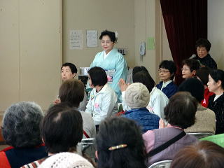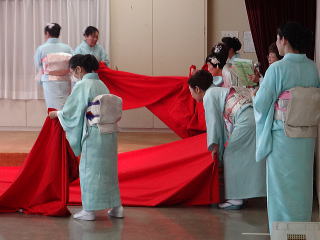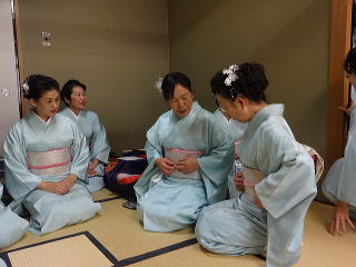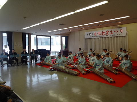 3月3日『ひなまつり』の今日は、 地元地域の公民館祭がございました。 前日、前々日と準備を進めてまいりまして、 当日の朝は、少しゆとりを持ち、臨ませて頂けました。 10時30分に、各係りが集合致しまして 再度準備にとりかかりました。 ![]() ![]() 皆様のお顔にも、少しゆとりがあるようでございます。 ![]() ![]() 本日、御助演を頂きます尺八の先生方も 次々にお見えになられました。 ![]() そして宗家先生もお見えになられ、 まずは揃ってミーティングを致します。 ![]() 演奏が始まるまでは、少し時間がございましたので、 宗家先生が着付けの手直しをして下さいましたり、 また、お仲間同士で直したりと、 皆様和気藹々でございます。 ![]() ![]() ![]() ![]() さて、公民館祭の開会式では 講師諸先生方と致しまして 宗家先生と、島橋知珠子先生が紹介されました。 ![]() 本日の曲目は 三曲合奏の部では 【ふるさと民謡浪漫】を演奏させて頂きました。 ふるさと民謡浪漫 (野村佑子編作曲) ![]() ![]()
