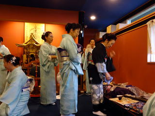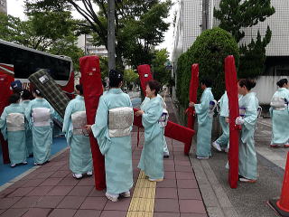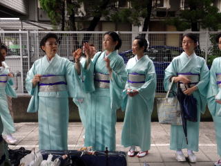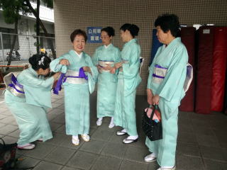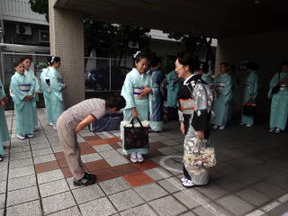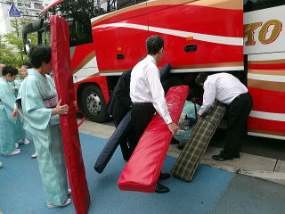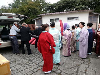 台風18号が近畿に近づく中、 予定通りに奉納演奏会が開催されました。 ![]() この日を前に、天気予報を見ては 心配致しておりましたが、 朝起きてみますと、堺は雨が降っていないどころか、 日が射しておりました。 ![]() ![]() 楽器類を全て用意し、 あとはバスが来るのを待ちます。 ![]() ![]() その間、お仲間が着付けを手直ししてくれたり・・・ ![]() 9時30分に集合し、10時の出発までに 楽器類をバスに積むのですが その間雨が降りませんように・・・。 ![]() ![]() お~!雨が降らないうちに、 楽器を全て積み込むことができました。 それでは、これから能勢の妙見山まで 約1時間半の旅へ出かけます。 ![]() ![]() バスに乗車致しますと、 各先生からご挨拶を頂きます。 ![]() ![]() そして皆さんは、宗家先生からのおやつを頂き、 毎年ちょっとした旅行気分でございます。 ![]() そんなこんなで、 あっと言う間に妙見山に到着♪ 気温は21℃。 この時期、こんなに涼しい妙見山は 初めてでございます。 ![]() ![]() ![]() さて!雨が降ってこないうちに、 楽器を会場まで運びましょう! ![]() そして会場に着きますと、 急いで準備にとりかかります。 ![]() ![]() 準備がひと段落致しますと、 控え室でちょっと楽しくくつろいだり、 お食事を頂いたり・・・ ![]() ![]() ![]() いよいよ演奏のお時間がまいりました。 今年、淀の会が演奏させて頂いた曲は3曲です♪ 【遥かなりみちのく路】 (野村正峰作曲) ![]() ![]() 【みずうみの詩】 (森岡章作曲) ![]() 【春、夏、秋と祭と…】 (佐々木洋子作詞・ 佐々木愛美作曲) ![]() ![]() ![]() ![]() ![]() 春夏秋と祭りと・・・は、 今回初めて披露させて頂きました。 同じ曲で、詩が違う『おおさかじまん』は、 6月の大文連で初演を飾らせて頂きましたが、 また違った雰囲気での演奏となりました。 妙見山を訪れて下さいましたお客様にも、 一緒に唄って頂けたら・・・と、 歌詞カードをご用意させて頂きました。 演奏が終わりますと、 「とても楽しい心弾む曲で、良かったです」とお言葉を頂き、 大変嬉しかったです。有難うございました。 一日が無事に楽しく終り、 いざ堺に向けての帰路につきます。 帰りの車中では、お酒も頂き、 ワイワイガヤガヤ(^^) 皆様、大変お疲れ様でございました。 ![]() ![]() ![]() |