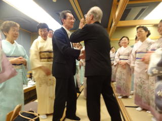 お弾き初めが終わりましたら、 場所を移動致しまして 希望者参加によります 懇親会を開催させて頂きました。 ![]() 各テーブルごとにお話が弾み、 とても和やかな雰囲気でございました。 ![]() ![]() そして途中では、お弾き初めの演奏に お力添えを頂きました尺八の先生お1人づつより、 お言葉を頂戴致しました。 お酒が入ってか?それとも地でなのか? とてもよくお話をされる先生も・・・。 ![]() ![]() ![]() ![]() ![]() ![]() 楽しいお話、為になるお話、 いろいろ聞かせて頂きました。 ![]() ![]() ![]() ![]() ![]() ![]() そして今年初めての試みで、 賞品を懸けての参加者全員によります 『あっち向いてホイゲーム』が行われました。 それはもう皆様、我を忘れて大変なことになり、 非常に楽しいひと時でございました。 ![]() ![]() ![]() ![]() 勝ち抜き戦で見事勝利を収められ、 とっても嬉しそう(^^) おめでとうございました。 ![]() 尺八の先生方に於かれましては、長時間に渡り お付き合いを下さいまして、 誠に有難うございました。 今後とも、淀の会を どうぞ宜しくお願い申し上げます。 |