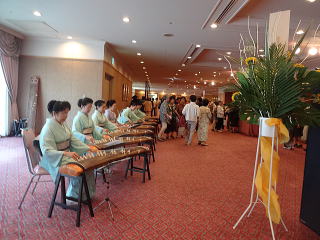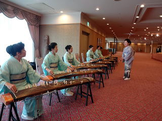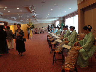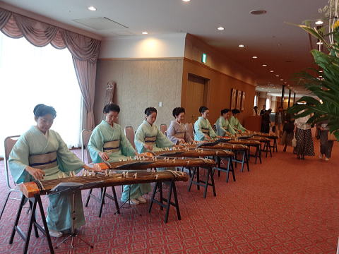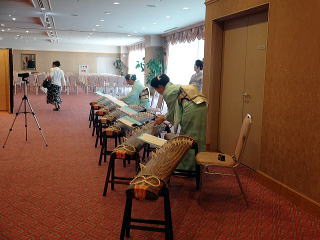 まだ梅雨明け宣言が出ておりませんが、 この猛暑には参りますね。 どうか皆様、くれぐれもお身体をご自愛下さいませ。 さて今日は、堺女性団体協議会様の 創立65周年ということで、 記念祝賀会が開催されました。 その席で・・・と申しますか、 ご来賓の方々が会場に入られるまでの時間、 私たちの奏でる、箏の音色をお楽しみ頂けたと思います。 ウエルカム演奏の依頼を頂戴致しまして、 朝の9時から会場入りをし、準備を致しました。 ![]() 準備が整いますと、いったん楽屋へ戻り、 少しの時間休憩をとらせて頂きました。 ![]() ![]() ![]() いよいよお客様がお見えになる お時間のようでございます。 私たちも、演奏のスタンバイを致しまして、 お客様をお迎えします。 ![]() ![]() 本日演奏させて頂きました曲は ・ 六段の調べ(初段) ・ さくらさくら ・ 日本のわらべ唄 ・ 古今の調べ ・ 野花とともに でございましたが、 約1時間皆で、演奏し続けました。 ![]() ![]() 演奏する私たちの前を、お通りになられるお客様が、 興味をお持ち下さっているのがよくわかりました。 お声をかけて下さる方や、 「いいわね~」などと言う声も、聞こえてまいりました。 |