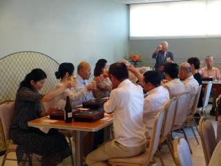 この日は、恒例の『堺三曲協会夏期合奏会』が開催され、 淀の会からも職格者が多く参加させて頂きました。 午前は役員会、そして午後から合奏会、 懇親会へと続きます。 ![]() 合奏会でお勉強させて頂いた曲は2曲。 桐壺(中村双葉作曲)と 北海民謡調(宮城道雄作曲)でございまして、 佐々木会長のご指導の下、 楽しく学ばせて頂きました。 ![]() また、源氏物語に大変お詳しい会員の方が 【桐壺】を解説下さいました ![]() なかなか流れをつかむのが難しい曲でございますが、 合奏を重ねるにつれまして、皆様お上手になられ、 とても内容の濃いお勉強をさせて頂けました。 桐壺に関しましては、 約2時間のお勉強会であったと思います。 ![]() ![]() ![]() ![]() ![]() ![]() ![]() そしてたくさんお勉強を頑張ったあとは、 皆様お待ちかねの懇親会の時間でございます。 ![]() ![]() 時間の経つのを忘れ、 ワイワイお話が弾みました。 ![]() ![]() 会員の方が太極拳をご披露下さる場面も・・・ ![]() 今日の合奏会・懇親会に ご参加下さいました諸先生方、 お暑い中を有難うございました。 |
