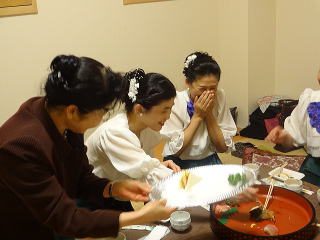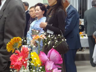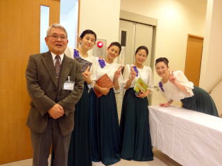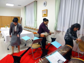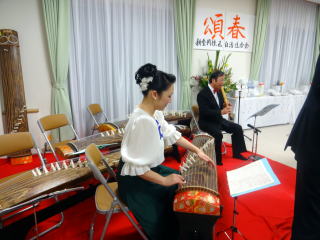 昨年に引き続き、 今年も依頼を頂戴致しまして、 地元、新金岡校区新年祝賀会のお席で、 お箏の演奏をさせて頂きました。 ![]() 演奏の3時間前に会場入りをさせて頂き、 ステージの準備・お調絃に取り掛かりました。 ![]() ![]() ![]() 出演者とお手伝いに来て下さった方が、 とてもスムーズに進行して下さり、 また、主催者側のお世話をして下さる方々も 大変よくして下さいまして、 あっと言う間に準備は整いました。 ![]() そして演奏までの時間が少しございまして、 楽屋で『腹ごしらえ』と言うことで、 ご用意頂きましたお寿司や、サンドウィッチを 皆で大変美味しく頂戴致しました。 ![]() 出演までの間、楽屋では 自分達の準備をしながらとても楽しい時間を 過ごさせて頂きました。 ![]() ![]() 「さて、もうそろそろ演奏のお時間かしら?」と 会場まで様子を見に行って下さったり・・・ ![]() 出演前の様子 ![]() いよいよ演奏をさせて頂くのですが、 本日の曲目は【春の海】 そして【天城越え/また君に恋してる/ラ・クンパルシータ】と言う、 皆様がとてもよくご存知の曲ばかりでございまして、 中には手拍子をして下さる方もおられ、 大変嬉しく演奏させて頂きました。 ![]() 昨年はお着物での 演奏でございましたが、 今年はドレス。 お客様方には、大変 好評でしたようでございますよ。