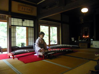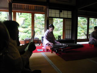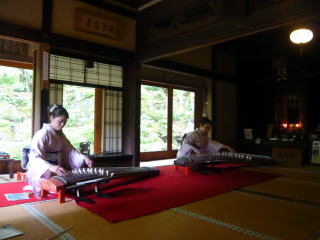 この日、あいにくの雨ではございましたが、 その雨も風情に変えて、 素晴らしい庭園がより美しく感じられました。 ![]() ![]() この度ご縁を頂きまして、 滋賀県安土にございます【教林坊】様で お箏の演奏をさせて頂く運びとなりました。 大阪より師匠である 佐々木愛美先生に助演を頂き、 お客様に馴染みのある曲を 数曲演奏させて頂きました。 手作りの歌詞カードも持参し、 お聴き下さる皆様も一緒になって 大きな声でお歌い下さいましたことが、 なにより嬉しく存じました。 30分ほどのステージを終えますと、 お客様からは「アンコール♪」のお声を頂戴し、 もうびっくり! 本当に嬉しく、また楽しいひとときを 過ごさせて頂きました。 ![]() ![]() 午前11時頃からの演奏でございましたので、 10時頃には到着し、 そこから準備を致します。 ![]() ![]() 大阪からは、お仲間が お手伝いに来てくれました ![]() 少しの時間ではございましたが、 皆様にはお喜び頂けたのではないか と思っております。 ご住職様ご夫妻も、 そして地元のお手伝い下さいました方々もお客様も 皆様本当に素敵な温かい方ばかりで、 私たちが心豊かにさせて頂きました。 まずは無事に終えることが出来、 ホッと致しております。 ![]() 愛美先生には演奏をはじめ、 舞台配置、所作などなど、 すべての面におきまして御指導頂きまして、 本当にありがとうございました。 反省すべき点も多く、 とても勉強になった一日となりました。 初めて依頼を頂いた「お仕事」 初めは緊張でいっぱいでしたが、 次第にその緊張もほぐれ、 お客様と一緒に歌ったりして、 最後には楽しく演奏させていただくことが出来ました。 このような厳かな、 素敵な場所で演奏させて頂けたことは、 とても貴重な経験になりました。 この経験を次にいかし、 今後も努力して参りたいと思います。 教林坊様には色々お世話になりまして、 誠にありがとうございました。 淀の会 教師 山階由紀美 |