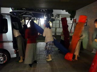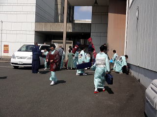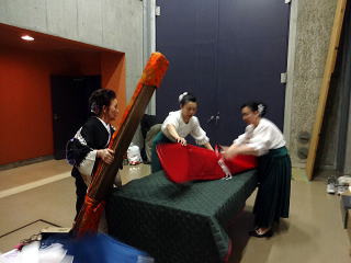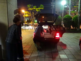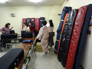 今回のステージは舞鶴と言うことでございまして 会員一同、ちょっとした演奏旅行気分で、 とても楽しみに致しておりました。 大型観光バスを一台チャーターし、 楽器は全て会のものを持参で臨みました。 積み込みのほうは、 毎年の妙見山での奉納演奏会で 要領は得ておりますので、大丈夫。 当日前より楽器類を 全て準備し、持ち出します。 ![]() ![]() そして当日の朝、 バスが到着致しましてから、 楽器を積み込み出発です。 ![]() ゲネプロが現地会場で 10時半から行われるということで、 私たちは堺を7時半に出発です。 全員揃ったところで、 いざ舞鶴へ出発~っ。 ![]() 伊丹空港横を通過し順調でしたが、 宝塚辺りで事故による渋滞に遭い、 予定よりも若干遅れが出ました。 ![]() ![]() それでも短い時間ではありますが、 休憩はきちんと取りますよ。 西紀のパーキングエリアにて… ![]() 「皆様、そろそろ再出発致しますが よろしいですか~」 バスに戻って来られたところをキャッチ! 点呼をして出かけます。 ![]() ![]() さて、いよいよ舞鶴に近づいてまいりました。 舞鶴港の海上自衛隊の駐屯地横を通過します。 ![]() ![]() そして会場に到着致しました。 ![]() 急いで楽器類を降ろし、 準備にとりかかり、 舞台のセットを行いまして、 【編曲八千代獅子】のゲネプロを致します。 ![]() ![]() ![]() ![]() ![]() ここまでバタバタと時間が経ってしまいましたが、 ようやくお食事の時間でございます。 美味しいお弁当を頂戴致しました。 ![]() そろそろ開場の時間が 近づいてきたようでございます。 ![]() ![]() ![]() 淀の会が出演させて頂く1曲目は、 宮城道雄編曲【編曲八千代獅子】でございます。 ![]() ![]() ホールの音響がとてもよく、 演奏者の私たちも大変気持ちよく 演奏させて頂きました。 残り2曲は、 佐々木愛美作品を演奏させて頂きます。 まず初めは【春、夏、秋と、祭りと…】 広いステージを目一杯使用しての 演奏でございます。 ![]() ![]() ![]() ![]() 最後は、ドレスに着替えて 【想い出をあなたに…】 ![]() ![]() ![]() ![]() 3曲ともに、最高の演奏が出来た思います。 久々に達成感を感じたステージでございました。 会員のご家族も、遥々堺の地より 演奏を聴きにお越し下さいました。 有難うございました。 ![]() 演奏が終了し、 全員で楽器の片づけを致します。 ![]() ![]() 皆様よく頑張って下さいました。 いつも笑顔で素敵ですね。 ![]() ![]() 演奏会が終わりましたら、私たちは全員、 パーティーにも参加させて頂きました。 ![]() ![]() ![]() ![]() ![]() ![]() ![]() 色々な先生方ともお話させて頂き、 とても楽しい時間を 過ごさせて頂くことが出来ました。 一日が終わり、 私たちは堺に向けて出発致します。 ![]() 途中、休憩をとりながら・・・ ![]() |