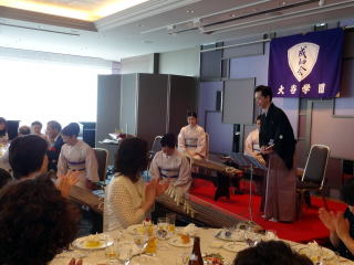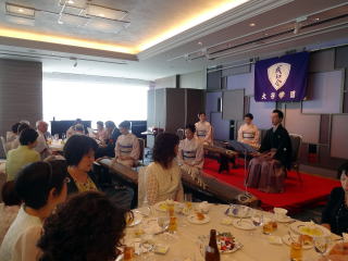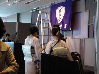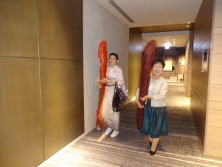 本日は大谷学園『成和会』様の総会後、 第二部のプログラムで、 お箏を演奏させて頂いてまいりました。 会場はあべのハルカス内 『マリオットホテル』でございます。 ![]() 淀の会より、若手(?)のメンバー、 そして尺八を永廣孝山先生に助演頂きまして、 約1時間のステージを踏ませて頂きました。 ![]() 出演者以外にも、お手伝いに来て下さいましたよ。 ![]() 午後からのステージではございましたが、 やはり準備などを早めに済ませておきたいので、 会場には9時30分に到着。 そこから、ホテルの方にもご協力頂きまして 楽器や備品の搬入を致します。 ![]() こちらがご用意下さいました 控室でございます。 素敵なお部屋でございましょう。 ![]() これから準備に取り掛かります。 ![]() ![]() もちろん会場のほうも… ![]() ![]() ![]() 準備が整いましたら、打合せを行います。 ![]() そして本番を迎えるまでの、 ちょっと落ち着いた時間で 写真撮影でございます。 ![]() ![]() いよいよ演奏をさせて頂くお時間となりました。 「皆様にお楽しみ頂けると嬉しいなぁ~」 と言う気持ちで、臨ませて頂きました。 まず一人ずつを紹介下さいまして、 ご挨拶させて頂きます。 ![]() 1曲目は ♪天城越え ♪また君に恋してる ♪エル・クンバンチェロ を続けて演奏させて頂きました。 エル・クンバンチェロの時には、 前にお座りになられているお客様が、 とても曲にノッて下さっているのが伝わり、 演奏しておりましても、嬉しかったです。 ![]() ![]() 2曲目は、宮城道雄作曲【水の変態】でございます。 ![]() 3曲目に【春の海】 ![]() ![]() そして最後にもメドレーで、 昔の懐かしい曲を演奏させて頂き、 会場の皆様にもご一緒にお唄い頂く… と言う設定でございます。 歌詞カードを事前に主催者様が ご用意下さいましたので お客様も皆様、 大きなお声で唄って下さいましたよ。 ♪四季の歌 ♪夏の思い出 ♪ふるさと ♪知床旅情 ![]() ![]() これでプログラムは終わりでしたが、 嬉しいことに、お客様より アンコールを頂戴致しましたので、 最後にまたまた皆様とご一緒に 【幸せなら手をたたこう】を唄って 終わりとさせて頂きました。 ![]() 皆様に大変喜んで頂き、 閉会後にはわざわざ お声をかけて下さる方がたくさん! 本当に素敵な一日でございました。 皆様ありがとうございました。 |
