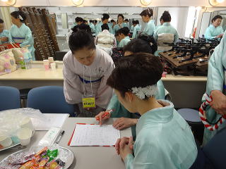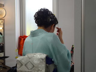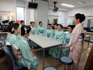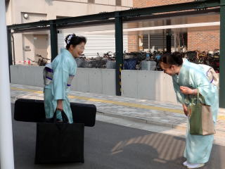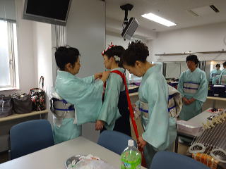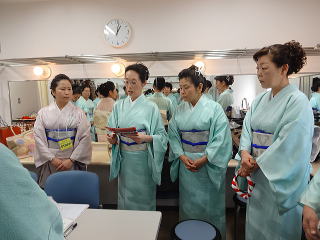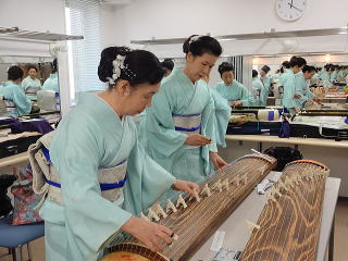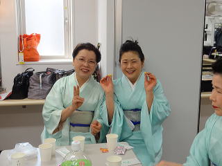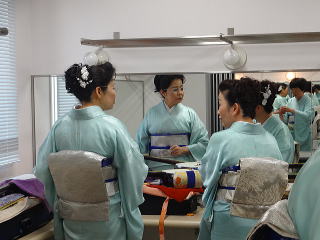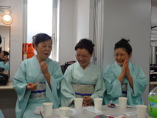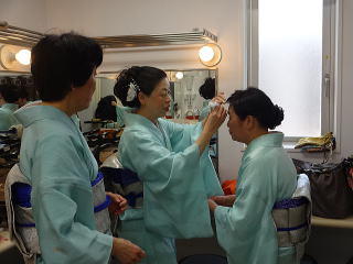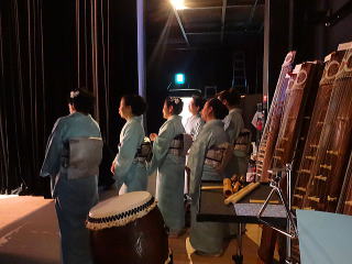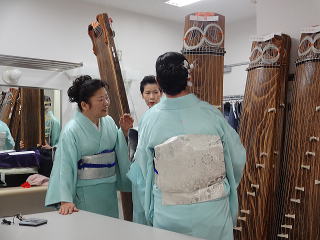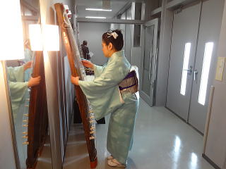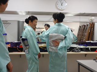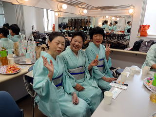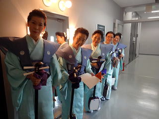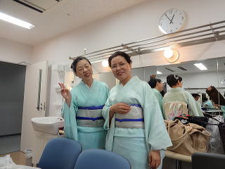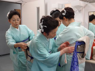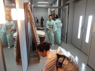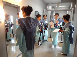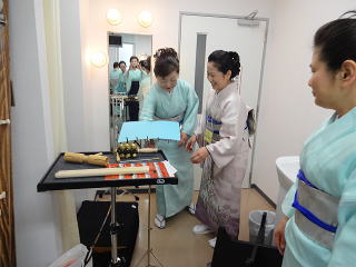 今日は風が強く吹いておりましたが、 春を感じさせる陽気となりました。 今年も清水美菜子先生を頭とする みはらフェスティバルに出演させて頂き、 あっと言う間の時間でございました。 会場に到着致しますと、 荷物の搬入から始まり 準備に追われます。 ![]() ![]() お箏とお三絃のお調子をとったり…。 ![]() 打楽器の準備を致しましたり…。 ![]() そして清水美菜子先生よりご挨拶がございまして ![]() その後には、舞台係りより連絡事項の説明など…。 ![]() 着々と準備は整い 出演予定時間まで、少しお茶を頂き休憩です。 ![]() ![]() ![]() ステージの時間が近づいてまいりますと、 それぞれにお化粧のチェックですとか、 互いに着付けの手直しを致します。 仲がよろしいでございましょう。(^^) ![]() ![]() ![]() ![]() 打ち物担当者は、はちまきなどの準備 ![]() ![]() お三絃の皆様は、裃を着付けます。 ![]() ![]() 私たちの出演時間は14時。 それまで、舞台付近まで楽器類を運び 準備をしなくては。 ![]() ![]() さて、そろそろ出番かしら…。 お三絃チームで「頑張ってまいります」 とガッツポーズ。 ![]() ではステージ袖に参りましょう。 ![]() ![]() ![]() 本日の演奏にご協力頂く 尺八の先生方でございます。 どうぞ宜しくお願い申し上げます。 ![]() 残念ながら、本日のステージ写真 【春、夏、秋と祭りと…】がございません。 その代わり、出演者の素敵な写真を 載せさせて頂きたいと思います。 今日もみんな、頑張りましたよ。 ![]() ![]() そしてお疲れ様でございました。 ![]() ![]() |