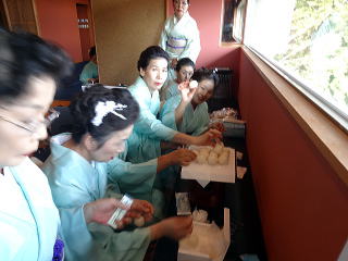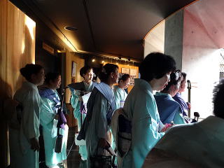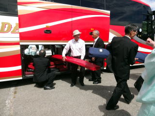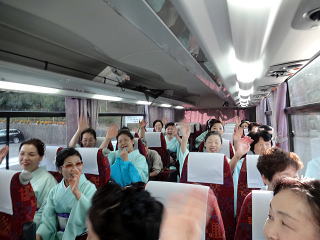 一週間ほど前の天気予報では、 しっかり傘マークがついておりましたこの日。 そんな予報は大きく変わり、 朝から好天に恵まれ絶好の遠足日和♪ いえいえ、遠足ではございません。 しかし、恒例の日帰りバス演奏旅行でございました。 バスは大阪の最北端、 能勢の妙見山へと向かいます。 ![]() 今年は珍しく、たくさんの先生より ご挨拶を頂戴致しました。 ![]() ![]() ![]() ![]() 高速も空いておりましたので、 1時間ほどであっと言う間に 妙見山に到着致しました。 ![]() 尺八の先生方が、 楽器の積み下ろしにご協力下さいますので、 私たち女性陣は本当に助かります。 いつも有難うございます。 ![]() と言うことで、淀メンバーは少し歩いて 【星嶺の塔】へと向かいます。 ![]() ![]() ![]() そしていつものように、会場に入りましたら まずは準備に取り掛かります。 ![]() ![]() ![]() 本来会場内は撮影禁止なのですが、 私たちはお許しを頂き、 撮影班として動かせて頂くことが出来ました。 ![]() ![]() ![]() ![]() 準備が整いましてからは、 控室にて昼食を頂きました。 これで、演奏を頑張れますね。 ![]() 淀の会の演目 1曲目は、 森岡章作曲 【たそがれのワルツ】 でございます。 ![]() ![]() 仲間たちも応援 ![]() ![]() そして控室では、演奏前の再確認を… ![]() 皆で聴きあいながら、良い演奏が出来るように 頑張りましょうね~ ![]() 続いての曲は、唱歌をメドレーに致しました 【心のうた】でございます♪ ![]() 会場にお越しになられているお客様にも、 歌詞カードをお配りさせて頂きますと、 一緒に唄って下さいました。 ![]() ![]() ![]() ![]() そして独奏曲、 【春の恵】を演奏致しました。 宗家先生も、見守って下さいます。 ![]() ![]() 控室では終曲に向けて、 裃の用意を致します。 ![]() ![]() その頃、お箏での演奏が珍しい 【エル・クンバンチェロ】で 賑やかに会場を盛り上げます。 ![]() ![]() ![]() ![]() プログラム最後は、 佐々木愛美作曲の 【春、夏、秋と、祭りと…】を 太鼓を入れての大合奏です。 ![]() ![]() ![]() ![]() ![]() 「お疲れ様~」と、 終えた太鼓を運んでくれています。 ![]() 演奏が終わりましたら、 楽器などの後片付けもすばやく行い、 頂戴したお月見団子を嬉しそうに分けさせて頂き、 バスへと戻ります。 ![]() ![]() 「楽しかったわ~♪ 帰りま~す」 とバスに乗り込みます。 そしていざ、堺に向けて出発!!! ![]() ![]() |
