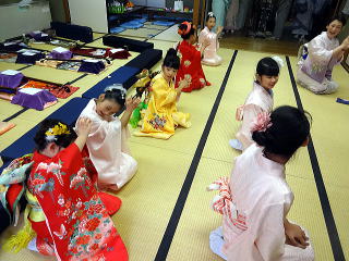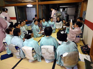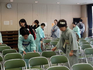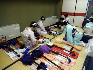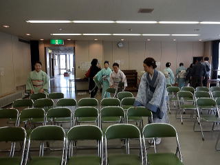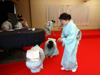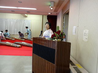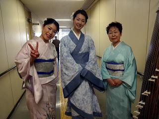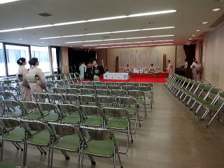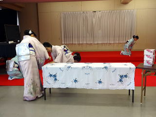 今年も淀の会の恒例行事と致しまして、 新春お弾き初め会が開催されました。 今年、初めて出演されるという 孫弟子の方も多かったように思います。 当日の天気ですが、 雨の予報は出ていなかったように思いますが、 朝起きてみますと、しっかりと降っており そのような中、各方面より会員の皆様が 元気にお集まり下さいました。 淀の会は、どのような時でもそうでございますが 各係ごとに着々と準備が進められます。 接待係に舞台係り、 そして三絃と お箏のお調絃係りでございます。 ![]() ![]() ![]() ![]() ![]() そして係りごとに一通りの準備が整いましたら、 ここで早めの昼食でございます。 ![]() そうこうしておりますと、 宗家先生がお見えになり、 一度皆様でご挨拶を致します。 ![]() あらあら、可愛らしいですね。 淀の会のジュニア生の皆様が、 お振袖でお越し下さいました。 ![]() さてここからは、会場の準備に取り掛かりますが、 とにかく早いのなんのって・・・。 ![]() ![]() ![]() ![]() 続いて、音響の確認でございます。 ![]() ![]() 一方控室では、淀の会のジュニア生が、 宗家先生のご指導の下、最終のチェックをし、 そして口紅を塗って頂いておりました。 ![]() ![]() ![]() さて、いよいお弾き初め会のスタートでございます。 ![]() プログラムをご紹介させて頂きますと ・ 八千代獅子編曲 ・ 桐壺 ・ 童謡三題 ・ 野花とともに ・ 想い出をあなたに… ・ 水の変態 ・ 楫枕 ・ 春、夏、秋と、祭りと… (今回は全てのプログラムの写真を 撮ることが出来ませんでした。) 童謡三題 (佐々木洋子 箏三絃編作曲) 小学生以下のお子様7名と言う、とても可愛らしいステージ。 ![]() ![]() ![]() ![]() そして、当日飛び入り出演のお嬢様。 宗家先生としっかり手を繋いで ステージへ出てきて下さいました。 ![]() ご家族の方も、ビデオに残して 下さっているようでございます。 ![]() そんなお子様方も、演奏を終えて ホッとされているのでしょうね。 みんなで仲良く控室でくつろいでいます。 ![]() 続いてに出演される皆様。 ちょっぴり緊張? ![]() 野花とともに (森岡章 作曲) ![]() ![]() ![]() 「プログラム5番、想い出をあなたに・・・でございます。」 とでも仰って下さっておられるのかしら。 ![]() 想い出をあなたに・・・ (佐々木愛美 編作曲) ![]() ![]() ![]() ![]() そして次は、師範披露曲でございまして、 ソロでの演奏です。 水の変態 (宮城道雄 作曲) ![]() ![]() ![]() 会場のお客様も静かに聴き入って下さいました。 プログラムも終わりに近づき、 職格者によります【楫枕】の演奏でございます。 楫枕 (菊岡検校 作曲) ![]() ![]() ![]() さすがに息の合った演奏でした。 終曲はこの曲で 華やかに締めくくりたいと思います。 春、夏、秋と、祭りと… (佐々木洋子作詞 佐々木愛美作曲) ![]() ![]() ![]() ほぼ予定通りの進行で、 無事にお弾き初め会を 終了させて頂くことが出来ました。 本日は、大変多くのお客様方にご来場頂きまして、 本当に有難うございました。 新しい年も始まったばかりでございます。 今年も淀の会は、会員仲良く芸に 精進して参りたいと存じますので、 応援をどうぞ宜しくお願い申し上げます。 懇親会は、次のページへ…。 ![]() |