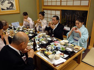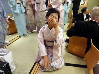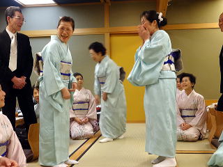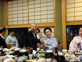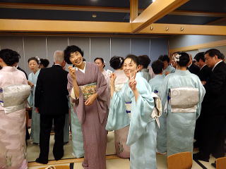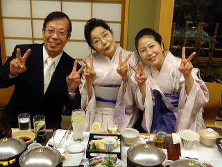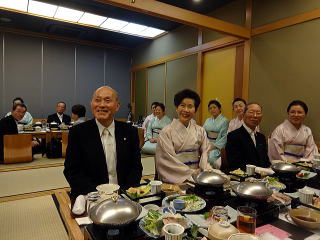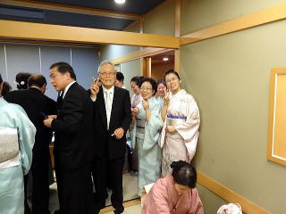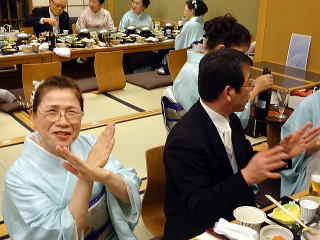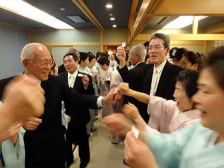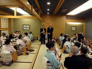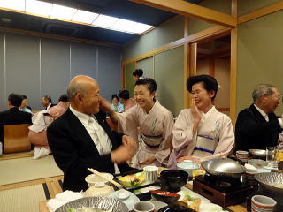 お弾き初め会が終わりましたら、 懇親会に参加される方は 皆様バスで移動致します。 会場に到着致しましたら、 初めに幹事の皆様よりご挨拶があり、 続きまして、宗家先生からのご挨拶、 そしてご来賓代表の先生から お言葉を頂戴致しました。 ![]() ![]() また、今年初めてご参加下さいました 尺八の先生のご紹介と、 淀の会師範免状を取得されました会員より ご挨拶を頂きました。 ![]() それから乾杯のご発声を頂きまして、 宴の席の始まりでございます。 ![]() ![]() ではここからは、皆様の 楽しいひと時をご覧頂きます。 ![]() ![]() ![]() ![]() ![]() ![]() ![]() ![]() ![]() ![]() ![]() そして恒例になりつつあります 「あっち向いてホイ」が始まります。 ![]() ![]() ![]() ![]() 皆様、時間の経つのを忘れて、 本当に楽しいひと時を 過ごすことが出来ました。 |