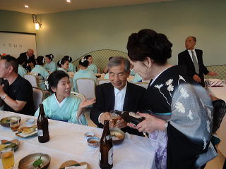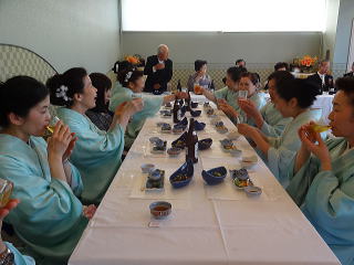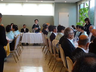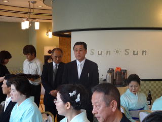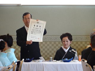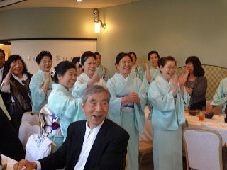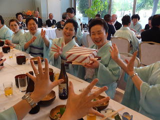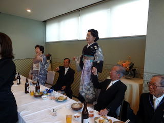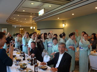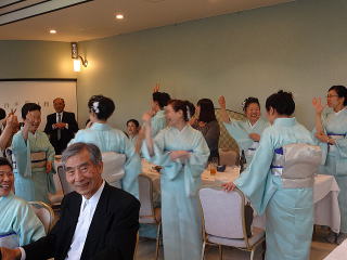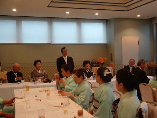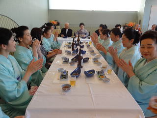 定演終了後、恒例の参加希望者によります 懇親会が開催されました。 今年も大勢の会員が参加して下さいましたので、 とても賑やかな時間となりました。 まずは会長の佐々木洋子先生より ご挨拶を頂戴致しました。 ![]() 続きまして、今年堺三曲協会は団体で 平成26年度大阪府憲法記念日知事表彰 文化部門(団体)功労賞を頂戴し、 この報告を、副会長の磯部道山先生より頂きました。 ![]() 「これからも会員一同芸に精進してまいります。」 ご挨拶と報告が終わりましたら、乾杯に移ります。 副会長の仲村嶂山先生 ご発声でございます。 「一日お疲れ様でございました。カンパーイ!!!」 ![]() ![]() しばらくは各テーブルで歓談タイム。 ![]() ![]() ![]() ![]() ![]() 来月よりお仕事で仙台に行ってしまわれる先生より、 皆様にご挨拶でございます。 あちらに行かれましても、 お元気で頑張って下さい。 ![]() そして最近堺三曲協会の懇親会では 恒例になりつつあります、 女性だけが参加出来るという、 ジャンケンゲーム。 会長先生とジャンケンをし、 勝利者にはプレゼントがございます。 女性の皆さんは我を忘れて、 必死に戦います(^^) ![]() ![]() ![]() ![]() 今年の定演も皆様のお蔭をもちまして 無事に終了致しました。 ありがとうございました。 ![]() |