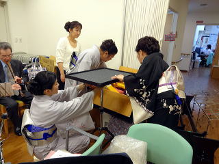 この度寄せて頂きました施設は、 8月にも訪問させて頂いたのですが、 前回のステージで、皆様に とてもお楽しみ頂けたそうで、 年内にもう一度…と言うご依頼を頂戴し 再び寄せて頂きました。 ![]() ![]() ![]() ![]() ![]() 演目も、皆様に楽しんでお聴き頂ける童謡や唱歌など、 1回目とは全て違う曲を ご用意させて頂きました。 ![]() ![]() ![]() ![]() ![]() 『古城・黒田節』に『砂山・叱られて』など、 きっと皆様には大変懐かしく、 色々思い出されながら お聴き頂けたのではないでしょうか。 『知床旅情』もいいですね~。 今回の二胡とのコラボ曲は 『いい日旅立ち』を演奏させて頂きました。 ![]() 1時間のステージをいっぱい使い、 私たちも楽しく演奏させて頂きました。 ステージ前の準備や休憩風景でございます。 まずは琴柱を立てます。 ![]() そして打楽器などの組み立て ![]() ![]() 尺八の先生は念入りに試し吹き ![]() 三絃のお調絃に、お箏の調絃も… ![]() ![]() ![]() 全ての準備が整いましたので 演奏時間まで少し休憩をさせて頂きました。 ![]() 施設の皆様、いろいろと ご配慮やご協力を頂きまして 有難うございました。 ウエリスト様のfacebookに 当日の様子を掲載して頂いています。 ウエリスト様のfacebookはこちら |