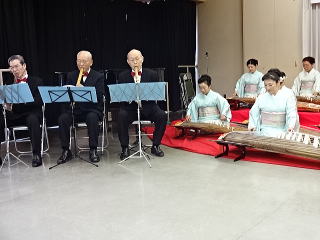 天気予報は当たり、 冷たい雨の一日となりました。 隔年に開催されます 『公民館文化教室まつり』ですが、 今年は開催の年です。 ![]() この日の集合時間は9時。 悪天候の中、しかも早い集合でしたが、 皆様は元気にお集まり下さいました。 そして直ぐに、それぞれ係の準備に 取り掛かって下さいましたよ。 ![]() ![]() ![]() ![]() 開会式が11時よりスタートし、 実行委員長様よりご挨拶を頂戴しました後、 講師紹介で、宗家先生と島橋先生も…。 ![]() ![]() 開会式が終わりましたら、 本日のプログラムオープニングに相応しく 【夢はマーチにのって】で 華やかに幕開けでございます。 ![]() ![]() ![]() ![]() パーカッションも入れての 賑やかな演奏となりました。 『夢はマーチにのって』の演奏が終わりますと、 次の出演まで少しお時間がございましたので、 控室に戻り、皆様でお食事を頂いたり、 ちょっと休憩をしたり…。 ![]() ![]() ![]() ![]() そうこう致しておりますと、 出演のお時間が近づいてまいりました。 続いては『古城・黒田節』 そして、ひなまつりにちなみまして 『春うらら』を演奏させて頂きました。 ![]() まずは【古城・黒田節】 ![]() ![]() ![]() ![]() 2曲目にメンバーを入れ替えての 【春うらら】でございます。 ![]() ![]() ![]() 尺八の諸先生方におかれましては、 早朝よりお越し頂き、 私どもの演奏に華を添えて頂きまして 有難うございました。 皆で楽しくステージを踏ませて頂くことが出来た 一日でございました。 |