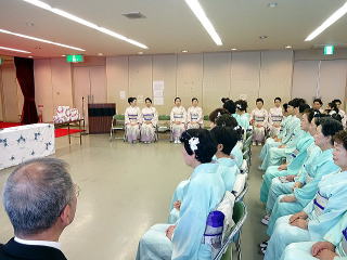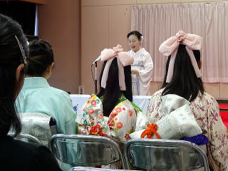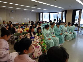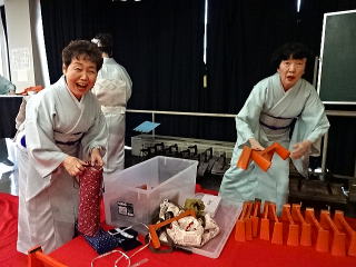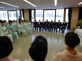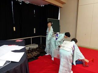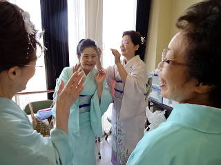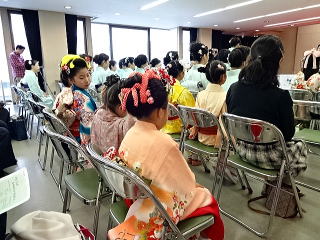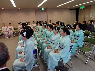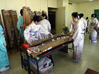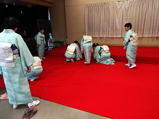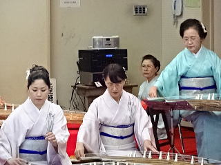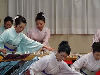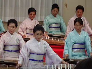 今年は、5月に控えております 『第8回 淀の会の定期演奏会』が開催されます為、 お弾き初め会は少し規模を小さくし、 会員の皆様のご負担を軽減しようとの思いで、 控えめに挙行致しました。 しかし、予行演習も兼ねて…と言うことで プログラムは、定演での曲を使いました。 当日は、それぞれ係り別に集合時間を決め、 職格者の方の指示で スムーズに事を運ぶことが出来ましたよ。 いつも会をまとめて下さる、 総務のお3人様でございます。 ![]() 接待係に舞台係り、 そしてお調絃係りの皆様が それぞれにご自分のお仕事を こなして下さいます。 ![]() ![]() ![]() ![]() ![]() ![]() ![]() 準備が思いのほかスムーズに 進行致しましたので 皆様でちょっと休憩タイムでございます。 ![]() ![]() ![]() ![]() ![]() 髪飾りを付けて差し上げたり ![]() ![]() お茶をしたり、着付けをしてもらったり… ![]() ![]() 今年もお子様方が出演下さり、 とても華やかでございました。 ![]() ![]() ![]() そして宗家先生のご挨拶がございましてから、 お弾き初めの開会式です。 ![]() ![]() ![]() ![]() ![]() ![]() ![]() <本日のプログラム> オープニングは野村正峰編曲の 【絵日傘に寄せて】で、 華やかに幕開けでございます。 この曲のお三絃を演奏される方は、 まだ三絃を始められて日の浅い方が多く、 文楽での定期演奏会に備えて、 日々お稽古に励んでおられます。 ![]() ![]() ![]() ![]() 2曲目は、お子様によります 【童謡三題】でございまして、 チューリップ・ゆりかご・証城寺の狸ばやしの 3曲が入っております。 とっても可愛らしいですね (*^-^*) ![]() ![]() ![]() ![]() 定期演奏会でもステージを踏ませて頂きますので、 どうぞ楽しみにされて下さいね。 続いては、佐々木愛美作曲の 【追憶】でございます。 この曲は、昨年の 『第5回全邦連主催の作曲コンテスト』に於きまして、 佳作を頂いた曲でして、 本来は、箏・十七絃・尺八の独奏三重奏曲ですが、 今回は演奏者を増やし合奏させて頂きました。 ![]() ![]() ![]() そして、職格者によります 【編曲松竹梅】 やはり演奏にも重みがございます。 ![]() ![]() ![]() 本日の終曲、 宮城道雄作曲の【日蓮】 この曲も、定期演奏会の終曲を飾らせて頂きますが、 出演者も総勢90名になるほどの 壮大なステージをお届け致します。 ![]() ![]() ![]() ![]() ![]() 今年のお弾き初め会は、 5曲だけのプログラムでしたが お楽しみ頂けましたでしょうか。 わたくしたちは今、5月に開催されます 『第8回 淀の会定期演奏会』に向けて 日々全力で練習に励んでおります。 その成果を、ご来場頂きますお客様に お届け出来れば幸甚に存じます。 どうぞお誘い合わせのうえ、お越し頂けますことを、 会員一同心よりお待ち申し上げます。 ![]() お弾き初め後の宴会のページはこちら |