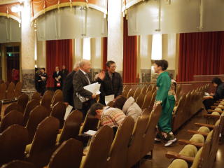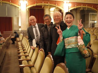この日は格別な寒さとなりました。 お昼過ぎからは、大阪市内にも雪が降り、 風も強かったですので、 それはそれは厳しい寒さでございました。 『咲くやこの花賞贈呈式』に ゲスト出演をされた孝山先生の助演として、 【春の海】を演奏させて頂きました。 ![]() 咲くやこの花賞HPはこちら 会場は、国の重要文化財に指定されている 『中央公会堂』でして、 赤レンガの壁で建てられた、 なんとも魅力ある佇まい。 ![]() ![]() 開場前・・・、淀の会のお仲間が、 ホール入り口の前に溢れております。 ![]() ![]() 開場になり、客席に入りますと それはそれは夢のような立派な空間が広がり、 素敵な照明の演出で、 ほんわかと温かい印象の室内でございました。 ![]() ![]() ![]() 勿論、贈呈式や受賞者の方々の芸術発表は 撮影禁止でございますので、 皆様にはお届けすることが出来ませんが、 ステージの雰囲気だけでも…。 ![]() 孝山先生がゲスト出演として、演奏された曲は 尺八独奏で『雁』 続いて、佐々木愛美が助演させて頂きました 『春の海』でございました。 音響もとてもよく録って下さいましたので、 会場内にも美しく響き渡り、 素敵な『春の海』を披露させて頂くことが 出来たと思っております。 18時30分の開演から始まり、 終演は20時30分でございました。 夜も遅い時間、またお寒い中をご来場下さいまして 本当に有難うございました。 ![]() ![]() ![]() ![]() ![]() ![]() 会場を出ますと、 辺りはすっかり暗くなっておりましたが、 そう致しますと中央公会堂もライトアップされ、 より素敵な建物に見えました。 ![]() |