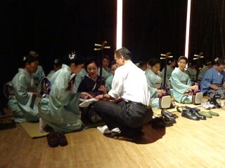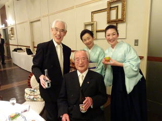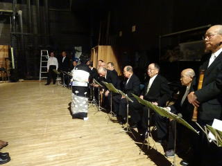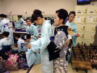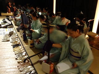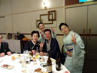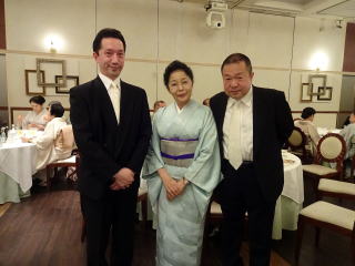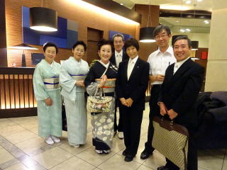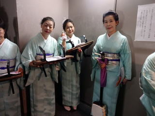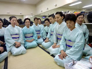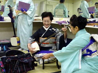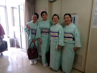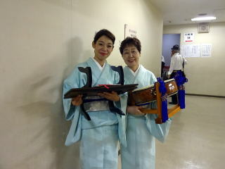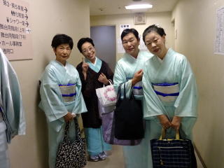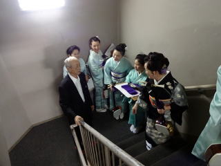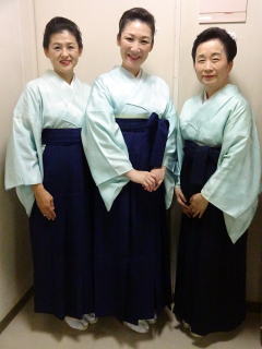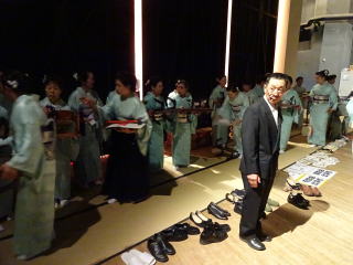 今年も『都山流大阪府支部定期演奏会』に 出演させて頂くことが出来ましたこと、 大変光栄に存じ、お礼申し上げます。 今年は、佐々木愛美作曲の 【雅なる堺】で出演させて頂き、 私たちの住む『堺』をアピールさせて頂きました。 堺よいとこ一度はござれ~ 一度来てみりゃ二度、三度~ 町の人情が 人を呼ぶ~♪ と、会場いっぱいに淀の会の歌声が 響き渡ったことでございましょう。 あいにく、ステージの写真がございませんが 淀の会会員の、輝きをご覧下さい。 出演前の楽屋にて… ![]() ![]() ![]() 会員仲良く、楽屋で待機をしております間、 宗家先生は生徒の着付けなども直して下さいます。 今年の淀の会出演時間は、 プログラム4番と早い時間でございました。 そろそろ舞台のほうへと準備を致します。 ![]() ![]() ![]() 1曲前になりますと、 舞台袖の敷物の上に整列致しまして、出演を待ちます。 宗家先生は、尺八の先生方にも 「宜しくお願い致します」とご挨拶に回ります ![]() ![]() 今回の『雅なる堺』は、 今までよりも更に趣向を凝らし演奏させて頂きました。 お蔭様で、たいへん多くの方よりご好評頂きまして 素敵な演奏をお届け出来たようでございます。 無事にステージを終えまして、 宗家先生よりご挨拶を頂戴し 解散とさせて頂きました。 ![]() ![]() お調絃係で記念撮影… ![]() 17絃を演奏致しました2名と、 打ち物の愛美先生は袴での出演。 ![]() 演奏会が終了致しますと、毎年 都山流様よりお招きを頂戴し、 楽しいひと時を過ごさせて頂きます。 ![]() 美味しいお料理にお酒、そして 数々のご高名な先生方と、 お話をさせて頂ける空間は、 とても素敵な時間でございました。 ![]() ![]() ![]() ![]() ![]() ![]() パーティーが終わりまして、 会場ロビーでもお竹の先生方と記念撮影。 ![]() 今年度の定期演奏会でも 大変お世話になりまして 誠に有難うございました。 |
