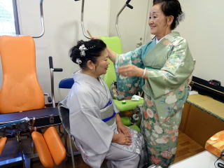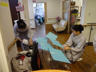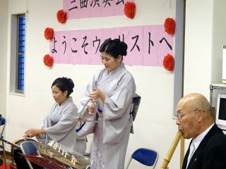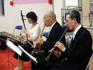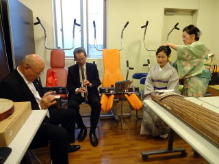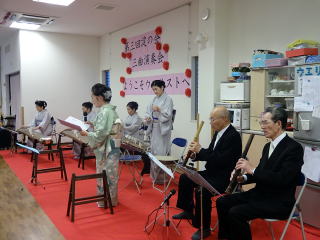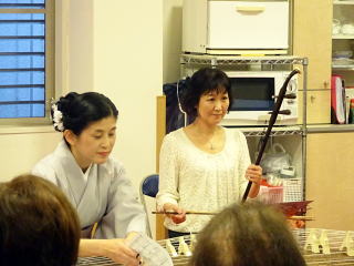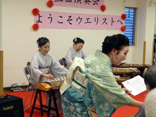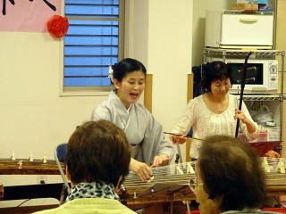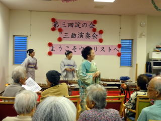 爽やかな秋風が心地よい季節となりました。 本日は、豊中の福祉施設への ボランティア演奏に出かけてまいりました。 ![]() 以前にもお伺いさせて頂いたことがございまして、 淀の会の演奏を楽しみにして下さり、 この度もご依頼を頂戴致しまして、 誠に有難うございました。 到着致しましても、 前回の経験がございますので スムーズに準備を進められます。 ![]() ![]() ボランティアでは、お箏の調絃も面数を最小限にし その都度変えてまいります。 ![]() ![]() そろそろ準備も落ち着いてきたようでございます。 ![]() 演奏開始時間まで、 ゆっくりさせて頂ける時間がございましたもので、 ご用意下さったお菓子など、 みんなで美味しく頂戴致しました。 ![]() ![]() そろそろ演奏の時間でございますので 身だしなみのチェックを致します。 宗家先生は、いつも生徒のことを 色々と気にかけて下さいます。 ![]() さて14時から演奏スタートでございます。 皆様と一緒に、楽しんでまいります(^_^)v ![]() ![]() 会場に入りますと、私たちを歓迎下さり嬉しく思いました。 ![]() 宗家先生より、ご挨拶があり、 そして演奏前の準備をし、 楽器の説明などを簡単にさせて頂きました。 ![]() ![]() ![]() ![]() 本日の1曲目は【上を向いて歩こう】 歌詞カードもご用意させて頂きましたら、 皆様がとても大きな声でお唄い下さいました。 ![]() ![]() ![]() 続いては【砂山・叱られて】でございます。 もともとパーカッションを入れる設定は無かったのですが 急遽、トライアングルや オーシャンドラム(波の音)も一緒に演奏。 ![]() ![]() 【秋によせて】はもみぢや、 夕やけこやけが入っている曲ですので、 今の時季にぴったり♪ 二胡を入れての演奏です。 ![]() ![]() ![]() 【ふるさと民謡浪漫】からは、 相馬盆唄・外山節・花笠音頭を演奏させて頂き、 いつもの踊りも交えての花笠音頭は大好評! ![]() 最後は美空ひばりさんの【お祭りマンボ】で 大盛り上がりの会場となりました。 ![]() この度も、皆様と一緒に 楽しい時間を過ごすことが出来ました。 有難うございました。 ![]() |