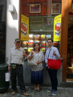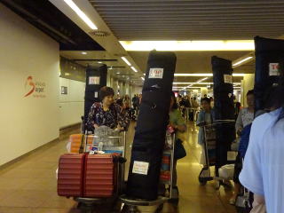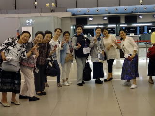 ![]() どのくらい前から、 今回のお話を頂いていたのか忘れてしまいましたが あっと言う間に海外公演を終えてしまった というのが印象でございます。 数か月前より、実行委員で 計画を立て進めてまいりました。 そして、参加される皆様には、ご協力を頂きまして 無事に海外公演を終え、帰国出来ましたことを 本当に嬉しく思っております。 ![]() 色々な問題を抱えながらの、 この度の海外演奏旅行でございましたので、 ご家族の皆様方に於かれましては、 本当にご心配であったことと存じます。 参加者全員が、元気に戻ってこれました事が 何よりでございます。 いよいよ出発当日です! この日のフライトは、 関西空港発23時40分でしたので 集合時間も現地に20時と、 とてもゆっくりの出発でした。 海外へはそれぞれに、お箏も三絃も、 自分の楽器を持参致します為に まずは、お箏をフライトケースに入れて 堺の地より関空へ運びます。 ![]() 関空での集合時間に、 皆様が集まってこられましたよ。 ![]() ![]() ![]() ![]() 台車にお箏を載せて、 添乗員様の指示に従い、 出来るだけスムーズに 行動したいものでございます。 ![]() スーツケースや楽器を預け、 搭乗の手続きを致します。 ![]() ![]() ![]() ![]() ![]() 全員の手続きが終わりましたら、 搭乗まで待合場所で待機します。 「行ってまいりま~す(*^-^*)」 ![]() 約7時間のフライトで、 乗り継ぎのドバイへ到着。 ここでは時差が5時間ですので、 時刻は朝の4時50分。 次の搭乗まで、3時間ほどございます為に ドバイ空港で時間をつぶします。 ドバイ空港はとても大きく、 こんな時間ですのに 空港内は賑わっておりました。 ![]() ここで乗ったエレベーターが、 とても大きいのには皆びっくりです。 入口が2か所にあるのです。 (この写真は、エレベーターの中なのですよ) ![]() 8時20分になりましたら、 いよいよブリュッセルに向けて出発致します。 ここからは6時間くらいの フライトでしたでしょうか…。 13時25分、 ブリュッセル到着でございます。 日本との時差は7時間。 ブリュッセルに着きますと、 お箏を運ばなければなりません。 スーツケースと共にですので、 これがまた大変でした。 皆で協力しあい、頑張りましたよ。 ![]() ![]() ![]() ![]() 楽器は専用の車に積み込んでくださり、 演奏会場まで直接運んで頂きましたので、 とても有難かったです。 わたくしたちは、観光用のバスに乗車し、 到着後、ブリュッセル市内の観光、 そしてその後は 宿泊先のブルージュの街まで移動します。 ![]() バスの車窓より、ブリュッセルの街を… 皆、元気そうでございましょ。 長旅の疲れも忘れ、 観光にワクワクしております。 ![]() ![]() ![]() サンミッシェル大聖堂をバックに、 記念撮影です。 ![]() そして街を歩き… ![]() ![]() 世界遺産のグランプラスの大広場へ到着です。 市庁舎だったり、王の家、 ギルドハウスの素晴らしい建築物です。 ![]() ![]() ![]() ![]() 小便小僧を一目観ようと、 多くの方がおられ 写真を写していました。 ![]() ここからは少し自由時間を頂き、 近くのお店などに足を運びました。 ![]() ![]() ![]() ![]() ![]() ![]() ![]() そしてガイドさんを筆頭に、 ヨーロッパ最古のアーケードショッピング街 ギャルリー・サンテュベールを歩いて、 バスへ向かいました。 ![]() ![]() ![]() ![]() ![]() 再びバスの車窓より景色を楽しみながら、 ブルージュの街へ向かいます。 ![]() ![]() ![]() ブリュッセルからブルージュまでは、 バスで約1時間30分。 しばらく致しますと、 ほのぼのとした田舎の景色に変わります。 ![]() ![]() さて、ブルージュで4日間お世話になります ホテルに到着致しました。 ホテルのロビーと、 お部屋の窓から見える外の景色です。 ![]() ホテルに着いて少し落ち着きましたら、 皆様でお食事に出かけます。 まずは、地ビールとチェリービールにて 乾杯です! ![]() ![]() ![]() ![]() ![]() ブルージュの街へまいりますと、 お店の至る所に 『ブルージュ・ジャパン・ディ 2016』の チラシを貼ってくださっていました。 感激でした。 ![]() 明日はブルージュの街を観光出来るので とても楽しみです。 ![]() ![]() 2日目へ続く…。 |