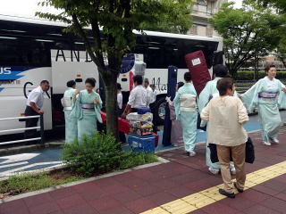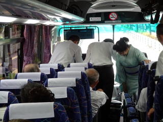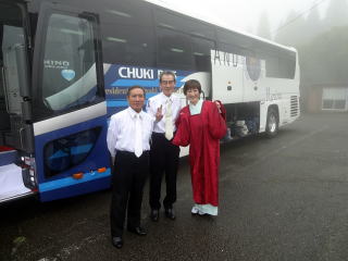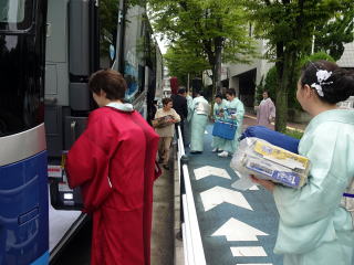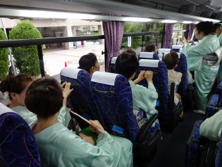 日本列島に台風接近中!!! 毎年のことですが、 『妙見山奉納演奏会』が近づいてまいりますと、 心配致しますのが台風…。 今年はどうやら避けられないようでございます…。 そんな不安な中でも、 行きの妙見山へ向かう道中は、 雨に降られることもなく 到着することが出来ました。 まずは、朝8時45分に集合を致しまして、 チャーターバスに楽器を積み込みます。 ![]() ![]() ![]() ![]() ![]() やはり淀の会! 常に迅速である行動に、 出発の予定時間よりも かなり早く準備が整いましたよ (・∀・) 順番にバスに乗車致します。 ![]() ![]() そして9時30分、能勢の妙見山へ 「いざ、出発~っ」 ![]() ![]() 今年もまた、宗家先生より おやつの差し入れを頂戴致しました。 尺八の鎌田先生からも、 一人一人にゼリードリンクを頂きました。 遠足気分で嬉しいです。 有難うございます。 ![]() バスが出発し、しばらく致しますと 鎌田先生よりご挨拶がございまして、 続けて小玉先生、愛美先生、 そして職格者を代表し清水先生からも ご挨拶を頂戴致しました。