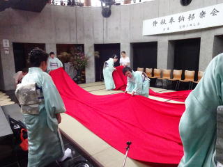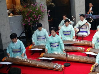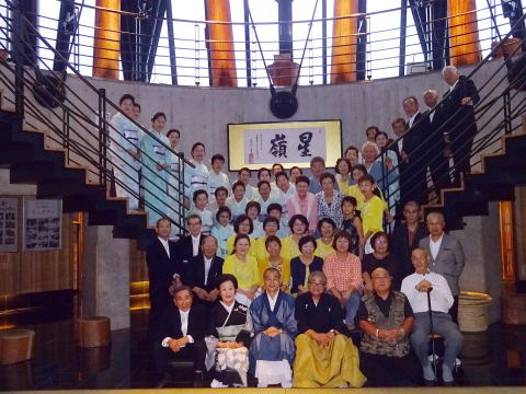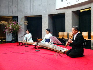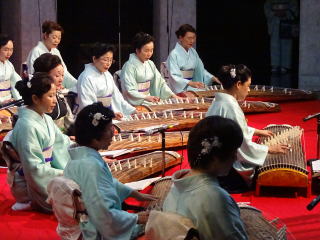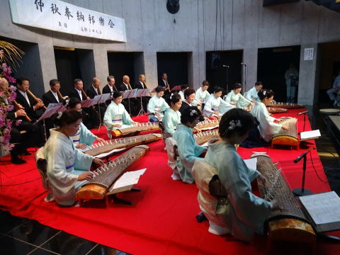 ![]() バスは順調に能勢へと向かいます。 ![]() ![]() 山頂の霧はとても濃く、 視界が悪かったのですが、 それはそれで風情が感じられ、 素敵でしたよ。 雨が降らないでいてくれたことが 何よりでした。 ![]() ![]() 会場に到着致しますと、 すぐさま準備に取り掛かります。 ![]() ![]() ![]() ![]() ![]() あっと言う間に、こんな素敵なステージに 仕上がりました。 ![]() ![]() ![]() これで少し一安心でございます。 ![]() ![]() ![]() ![]() 午後1時30分より、奉納演奏会開演です。 今年で第20回目を迎えました 『奉納演奏会』 終曲には『日蓮』を 演奏させて頂きます。 ![]() ![]() まず初めに、野村正峰編作曲 【幻想曲 まりと殿様】です。 ![]() ![]() ![]() 今年も愛美先生は、司会も務めます。 ![]() 淀の会2曲目は、 野村祐子編曲によります 【編曲 春の海】でございます。 ![]() お3人の演奏を、 祈るように見入るメンバー達。 ![]() ![]() ![]() ![]() 淀の会最後の演奏は、 宮城道雄作曲【日蓮】 ![]() ![]() ![]() ![]() 今年の奉納演奏会は、 あいにくの雨模様にもかかわりませず ご来場くださったお客様がおられました。 誠に有難うございました。 最後に本日の公演出演者全員で 記念撮影を致しました。 ![]() 帰りは豪雨に見舞われましたが 今年も何とか無事に終えることが出来ました。 お手伝いくださいました尺八の先生方、 ご協力を頂きまして、有難うございました。 帰りのバスで頂くお酒は 「最高に美味しいです!」