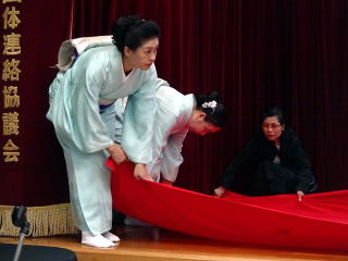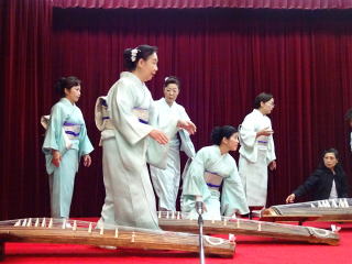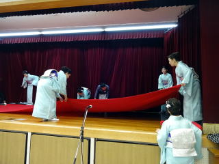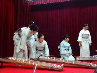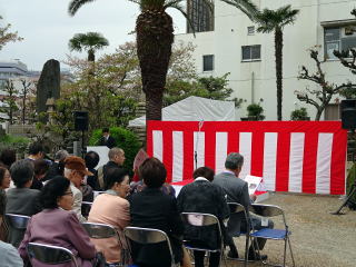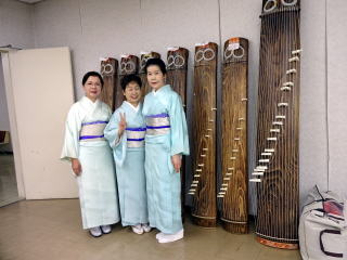 今年も『彩桜忌』開催の頃となりましたが、 例年よりも数日だけですが遅い開催…と言うこともあり、 満開の桜を楽しむことは出来ませんでした。 それでも、まだまだ頑張って咲いていてくれる桜の花に、 手を合わせました。 会場へ向かう道中は『藤』の花が満開でしたよ。 彩桜忌の第一部『式典』では、 主催者様側のご挨拶、 そして山口彩子前委員長を偲んでの一言、 ご来賓のあいさつなどがございました。 そして第二部のアトラクションのオープニングを、 淀の会が飾らせて頂くのですが、 演奏曲目は、野村正峰編作曲 【幻想曲 まりと殿様】でございます。 このステージを踏ませて頂く為に、 朝は10時に会場入り。 皆で、着々と準備をこなします。 演奏を終え、後片付けも終了し、 ホッと致しておりますところへ、 宗家先生が全員におうどんをご馳走くださいました。 大変美味しく頂戴致しました。 今年も出演させて頂けましたこと、 有難くお礼申し上げます。 |