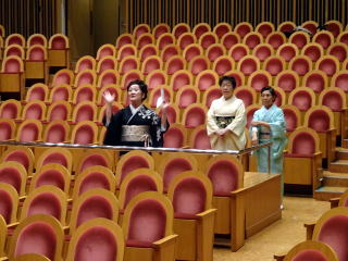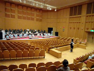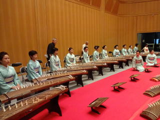 今年も例年のように、 『堺三曲協会定期演奏会』が 盛大に開催されました。 この時期、お子様やお孫様の運動会と重なることもあり、 お客様の入りが心配されましたが、 開場と同時に、大変多くのお客様にご来場賜りまして、 本当に有難うございました。 ![]() ![]() 本日の受付嬢でございます(^^♪ 毎年『堺三曲協会会員』が、 交替で受付に立たせて頂きます。 淀の会会員と、他のお社中の先生方です。 ![]() 堺三曲協会会長先生も…。 ![]() 13時の開場を前に、 朝からホール内は準備に追われておりました。 12時からは、序曲のゲネプロもございまして、 舞台セッティングにみんな大忙しです。 ![]() ![]() ![]() ![]() そしてようやく、総勢64名出演の序曲 【まりと殿様】のステージが完了致しました。 ![]() その後は、役員でのミーティングが行われたり 楽屋での係のお仕事、 またゲネプロまでの束の間のリラックスタイムです。 役員のミーティング ![]() お三絃調絃係りの皆様 ![]() お箏お調絃係りの皆様 ![]() リラックスタイムの記念撮影など… ![]() ![]() 今年も大変お世話になります、 お琴屋さん4名です(^-^) ![]() 会長先生と、毎年お世話になっております ナレーターの先生です。 ![]() 相談役先生や、 副会長先生などなどでございます。 ![]() ![]() 12時になりますと、 序曲のゲネプロ開始です。 出演者は、続々とステージに集まります。 ![]() ![]() そして、12時から約40分間のゲネプロとなりました。 会長先生のご挨拶の立ち位置も、 しっかり確認致します。 ![]() ゲネプロでは、皆様の息を合わせます。 ![]() ![]() ![]() ![]() ![]() そして、何回か練習を致しましたお蔭で、 本番では、これだけの大人数にもかかわらず、 見事に演奏することが出来ました。 序曲【まりと殿様】 ![]() ![]() 今年の淀の会の挑戦は、 総勢16名、全員がお三絃というステージ。 【夕顔】を演奏致しました。 ![]() ![]() ![]() ![]() 舞台袖で待機の様子です。 ![]() 続いての演目は【四季の夕べ】 淀の会の職格者によります見事な演奏♪ ![]() ![]() ![]() 【高麗の春】は、淀の会より2名が独奏です。 演奏前の、緊張しておられる?様子でございます。 ![]() ![]() ![]() ![]() 今年の終曲は、 堺三曲会員有志によります【五丈原】 シンバルも入れての壮大な演奏で、 締めくくりです♪ ![]() ![]() ![]() ![]() ![]() 今年の堺三曲協会定期演奏会も 多くのお客様方に支えて頂き、 盛会裏に終えることが出来ましたことを、 会員一同お礼申し上げます。 誠に有難うございました。 懇親会の様子は、こちらから |