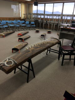 この日は朝から雪がチラチラと降りはじめ、 寒い日となりました。 一限目から音楽の授業入らせて頂くので、 早めに支度をし、向かいました。 ![]() 今日の授業は先日練習した「さくらさくら」です。 最後には十七絃との合奏もします。 ![]() まずはじめに 、十七絃ってどんなもの?ということで、 絃の本数、普通のお箏の大きさとの 違いなどを見て頂き、 その後は音色を聞いて頂きました。 『いつしか時は過ぎゆきて』 (野村祐子作曲)の 独奏部分を演奏致しました。 この曲は左手を使ったり、 ピッチカートもあったりと、 色々な奏法、そして表現力、 スピードを求められる曲です。 お箏と違う音色、弾き方に 皆さんびっくりしていた様子です。 十七絃を初めて見た生徒さんも多く、 皆さん食い入るように見て、 しっかり聞いてくださいました。 ![]() その後はお手本で、「さくらさくら」を 音楽の先生と一緒に合奏したのですが、 生徒の皆さんはとても静かに聞いてくださり、 最後には大きな拍手も頂きました。 また先生も、合奏が楽しいと喜んでくださいました。 「お箏に触れる機会がなかなかないので、 本物の音色を聞き、実際に触って弾くということが、 とても新鮮です」と仰っていました。 ![]() 少しの時間でしたが、 生徒の皆さんは本当に素直で可愛らしく、 また上達も早かったのでびっくり致しました! 少しでもお箏に興味を持ってくれる方が 増えればいいなと願います。 今回も音楽特別授業の講師として お声をかけて頂きまして、ありがとうございました。 また、校長先生、音楽の先生には 大変お世話になりまして、ありがとうございました。 教師 山階由紀美 |