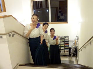 皆様、新年明けましておめでとうございます。 「早いもので、今年も残すところ…」 なんて申しておりましたのに あっと言う間に年が明け、お正月も過ぎ、 月日の流れの早さを、 ひしひしと感じております。 昨年の淀の会は、 6月に『ベルギー海外公演』と言う、 とても大きなステージを成し遂げ、 充実した1年でございました。 今年も、年間を通しまして、 様々な活動をこなして参りたいと存じます。 皆様方の温かい応援を、 どうぞ宜しくお願い申し上げます。 その幕開けとなりましたのが、 日頃とてもお世話になっております 地域連合会様主催の 『互礼会』での演奏のご依頼です。 ![]() 今年で何年目になりましたでしょうか…。 毎年お声をかけて頂き、大変光栄に存じます。 この度も、精一杯務めさせて頂きます。 今年の演奏者は3名。 そこに、お手伝いで2名の メンバーが加わり頑張りました! 毎年のことでございますので、 ステージの準備も、だんだんと 要領を得てまいりました。 ![]() ![]() ![]() ![]() ![]() 会場の準備が整いましたら、 演奏の時間まで少しございますので、 控室にて、ご用意頂いた食事を ご馳走になります。 ![]() お腹もふくれたところで、 そろそろ演奏の準備をしたいと思います。 今日は、お揃いの紫のお花を 胸元につけての演奏です。 ![]() それではスタンバイです! ![]() ![]() 本日の演奏曲目は ♪涙そうそう ♪柔 ♪港町13番地 ♪ソーラン節 ♪こきりこ ♪青い山脈 会場の皆様方もご存知の曲ばかりで、 大いに盛り上がりました♬ ![]() ![]() ![]() 演奏させて頂いたわたくしたちも、 今年初めてのステージがとても楽しく、 幸先の良いスタートを 切ることができました(^^♪ ![]() 今年も、皆様の心にお届けできる 素敵な演奏を目指して、 会員一同、練習に励みたいと思います。 |