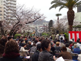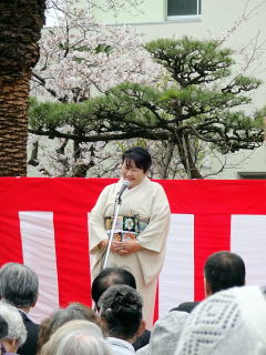 今年は、いつまでも気温の低い日が続き 例年に比べて、桜の開花が遅いかと思っておりましたが ここ数日の陽気で、一気に花が咲きました。 そのような満開の桜の下で、 今年も『山口彩子先生を偲んで~ 第12回 彩桜忌』が開催されました。 ![]() ![]() ![]() 11時からの式典は、 女性センター隣の顕本寺で開催され わたくしたち淀の会も、参列させて頂きました。 ![]() ![]() ![]() そして第2部の 『彩子先生を偲んで 平和のための文化芸術演舞』のオープニングを わたくしたち淀の会が飾らせて頂きました。 この為のステージのセッティングなどを、 午前10時より素早く行いました。 ![]() ![]() ![]() ![]() ![]() 12時からの開演に向けまして、 身だしなみを整えて… ![]() ![]() 本日は残念ながら、 ステージ写真がございませんが、 演奏のほうもうまくいき、 お客様より「素敵でした」との お声をたくさん頂きました。 ![]() 演奏前の気合です(^^)v 「頑張ります!」 ![]() ![]() 演奏、片付けが終わりましてから、 メンバーでお茶を頂きました。 ![]() 今日もお疲れ様でございました。 |