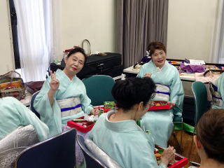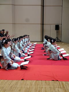 この日は台風の影響もあり、 朝から雨の一日となりましたが、 予定通り『上田流尺八道定期演奏会』そして、 『お家元誠友会様創立65周年記念演奏会』 が盛会に開催され、誠におめでとうございました。 ![]() 今年の会場は、豊中のアクアホール。 真っ赤なカーペットに、 真っ赤な客席がとても印象的で、 素敵なホールでした。 ![]() ![]() 淀の会出演者は10時半の集合で、 会場入りをした後は、 各係のお仕事に分かれて準備をすませ、 その後出演時間まで、 客席にて他のお社中の演奏を聴かせて頂きました。 ![]() ![]() 本日の淀の会の出演曲は三曲ございまして、 まず初めに演奏させて頂くのは『夕顔』です。 演奏前には、宗家先生より 演奏の再確認がございました。 ![]() ![]() ![]() いよいよステージに向かいます。 何度もリハーサルを行いましたので大丈夫! 「行ってまいります」 と、皆様笑顔で応えてくれました。 ![]() お三絃による【夕顔】 ![]() ![]() ![]() ![]() ![]() ![]() ![]() 一曲目が終わり、昼食を頂きます。 主宰者様よりお弁当をご馳走になりました。 ![]() 二曲目の【小川のほとりにて】では、 恒例になりましたピアノとのコラボです。 ![]() ![]() ![]() ![]() ![]() ![]() ![]() ![]() 最後は、佐々木愛美作曲 【春、夏、秋と祭りと…】で、 華やかに演奏します。 ![]() 演奏を終えたあと、いろいろな方より 「祭りの曲が良かったですよ」と、 お褒めのお言葉を頂戴し、 大変嬉しゅうございました。 ![]() 三曲の演奏を無事に終え、 宗家先生よりご挨拶を頂戴しました。 ![]() ![]() 本日出演された淀の会会員の皆様、 お疲れ様でございました。 悪天候の一日となりましたが、 よく頑張ってくださいまして有難うございました。 ![]() ![]() またこの度も、良いステージを頂戴し、 大変お世話になりました、上田流尺八道諸先生方、 誠に有難うございました。 益々のご繁栄をお祈り申し上げます。 ![]() |